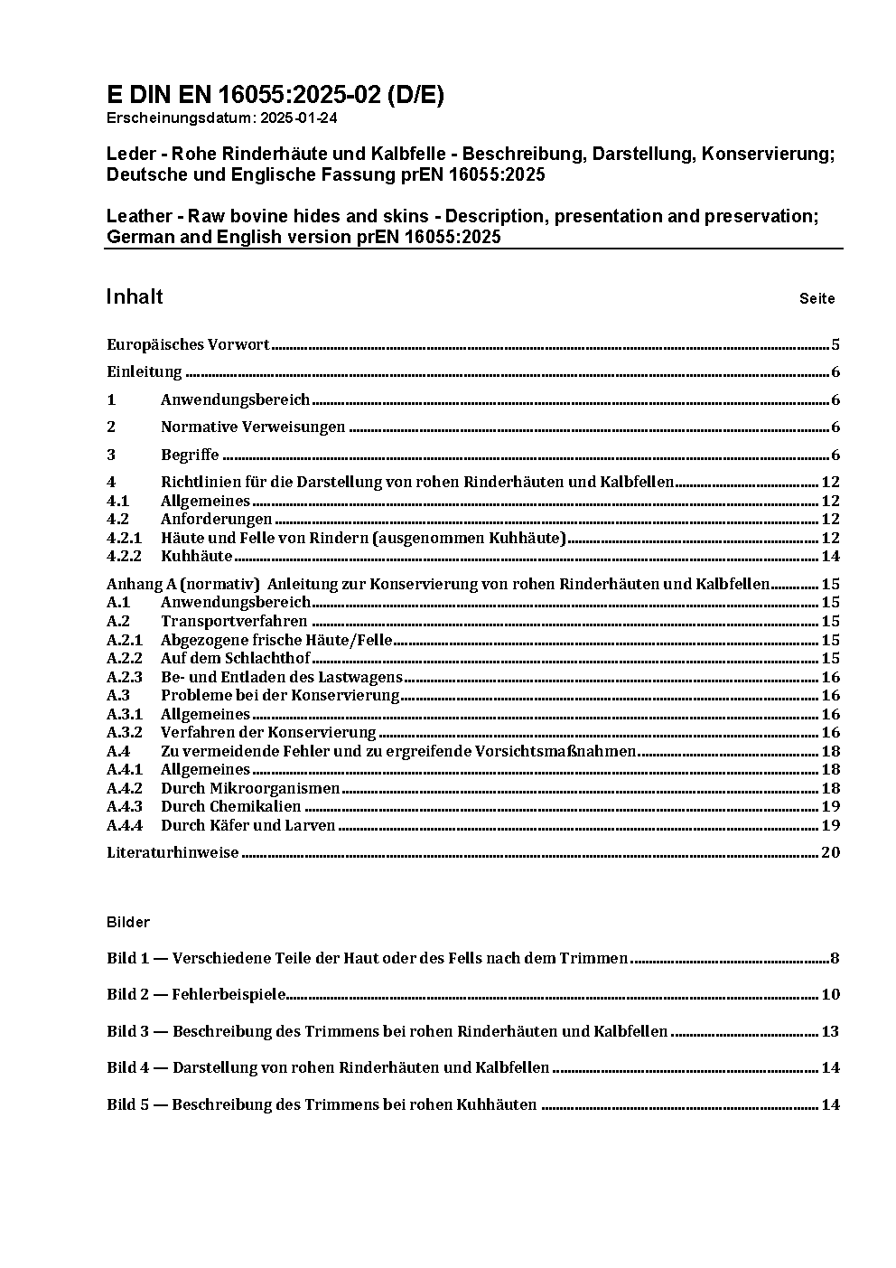 Leather - Raw bovine hides and skins - Description, presentation and preservation; German version EN 16055:2012