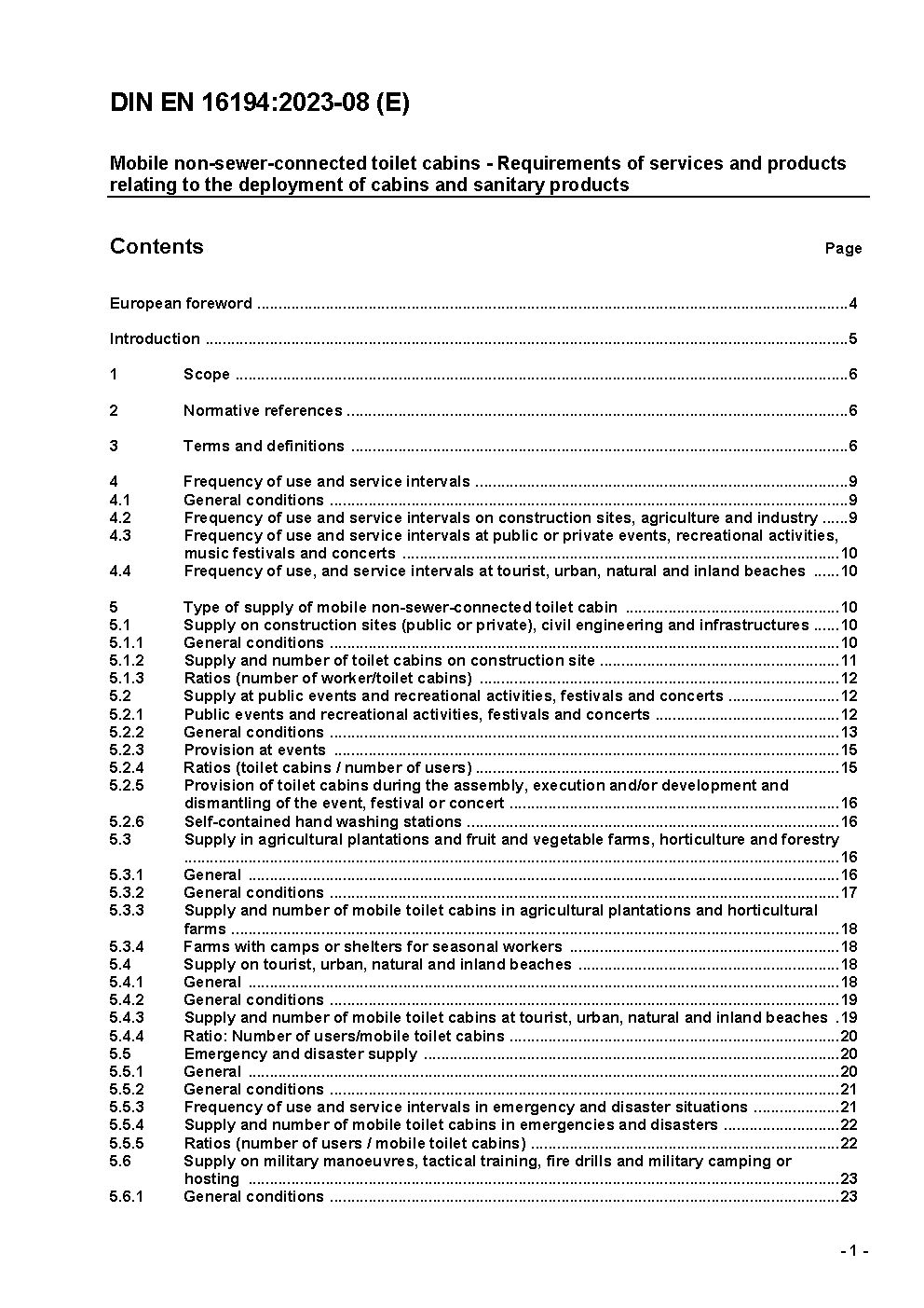 This standard covers the requirements for services for mobile, non sewer-connected toilet cabins considering also hygiene, health and safety. Minimum qualitative requirements for cabins and sanitary products are also dealt with.