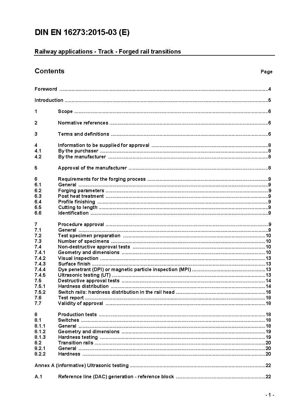 Railway applications - Track - Forged rail transitions; German version EN 16273:2014