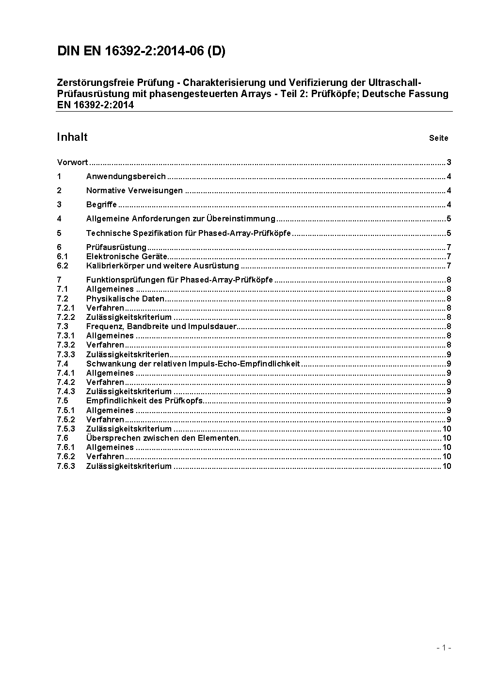 Non-destructive testing - Characterization and verification of ultrasonic phased array systems - Part 2: Probes; German version prEN 16392-2:2012