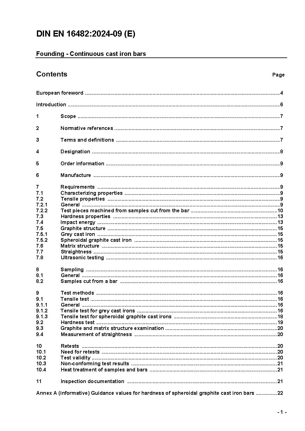 This European Standard defines the grades of grey cast iron and spheroidal graphite cast iron bars, which have been manufactured by the continuous casting process.