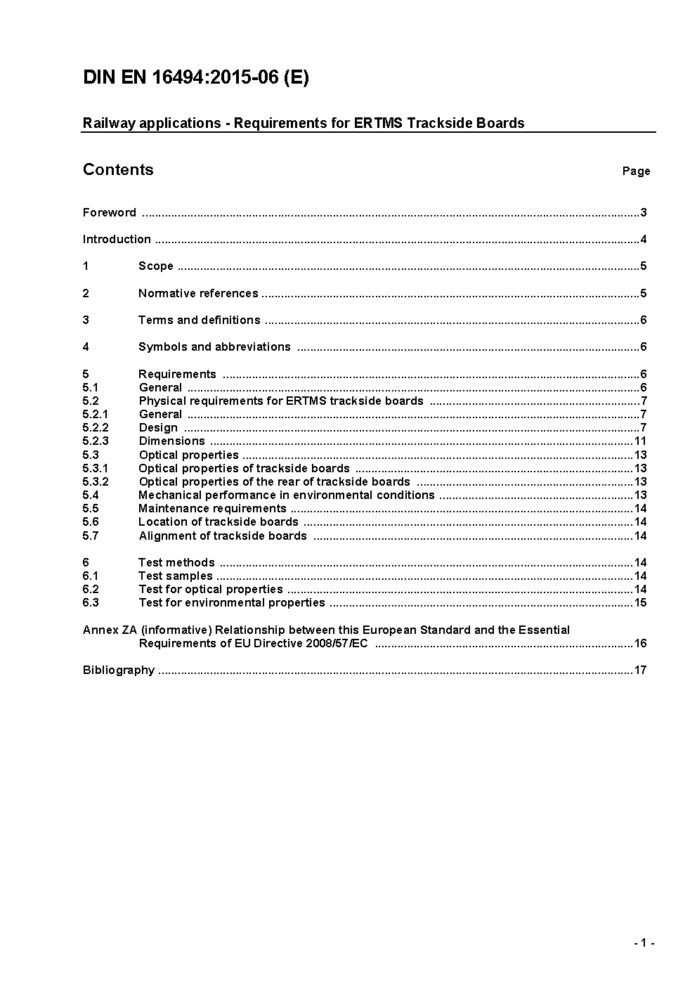 This European Standard defines the requirements for the provision, visibility, readability, maintenance and testing of ERTMS trackside boards. This includes the arrangement of the boards and their interface with existing systems (track, cab design including cab sight lines, visibility by the driver and train head lamps).