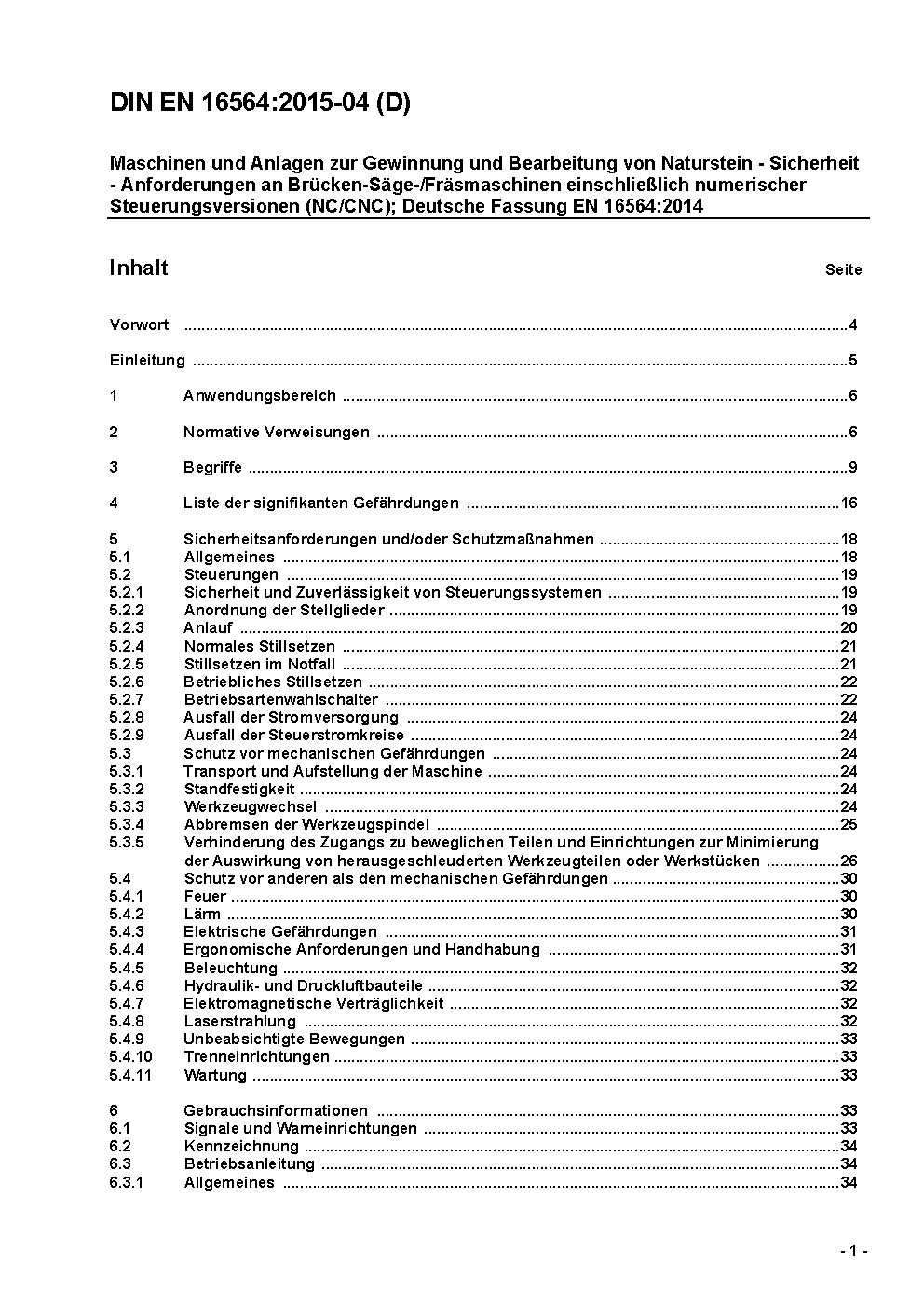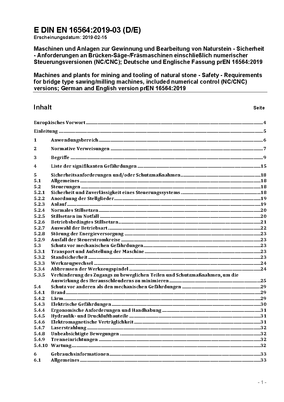 Machines and plants for mining and tooling of natural stone - Safety - Requirements for bridge type sawing/milling machines, included numerical control (NC/CNC) versions; German version EN 16564:2014