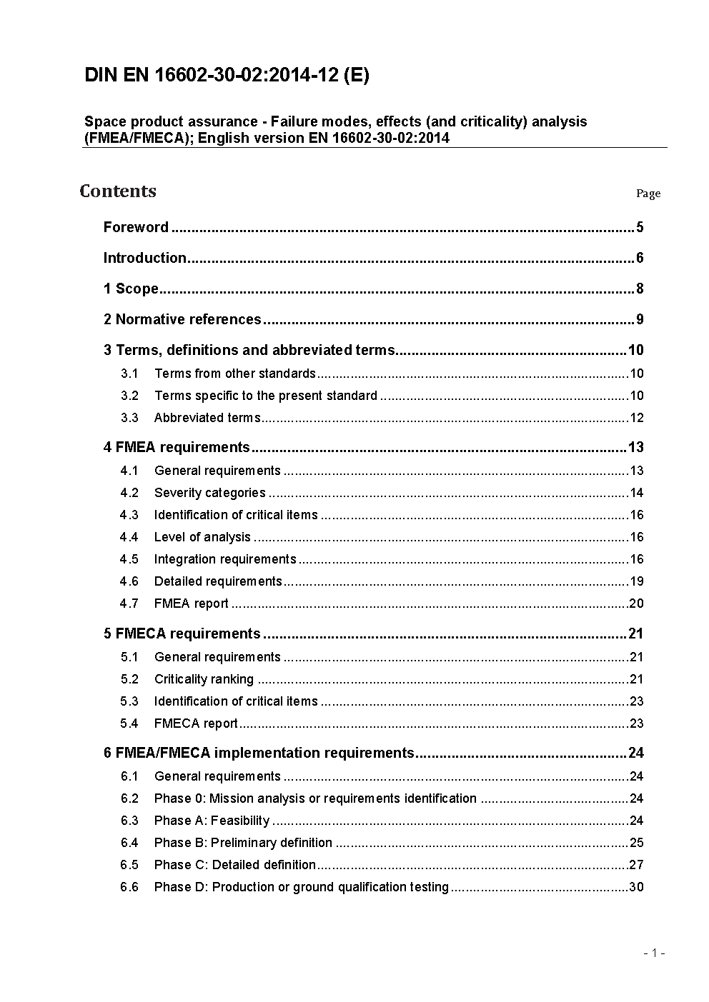 Space product assurance - Failure modes, effects (and criticality) analysis (FMEA/FMECA); English version FprEN 16602-30-02:2013