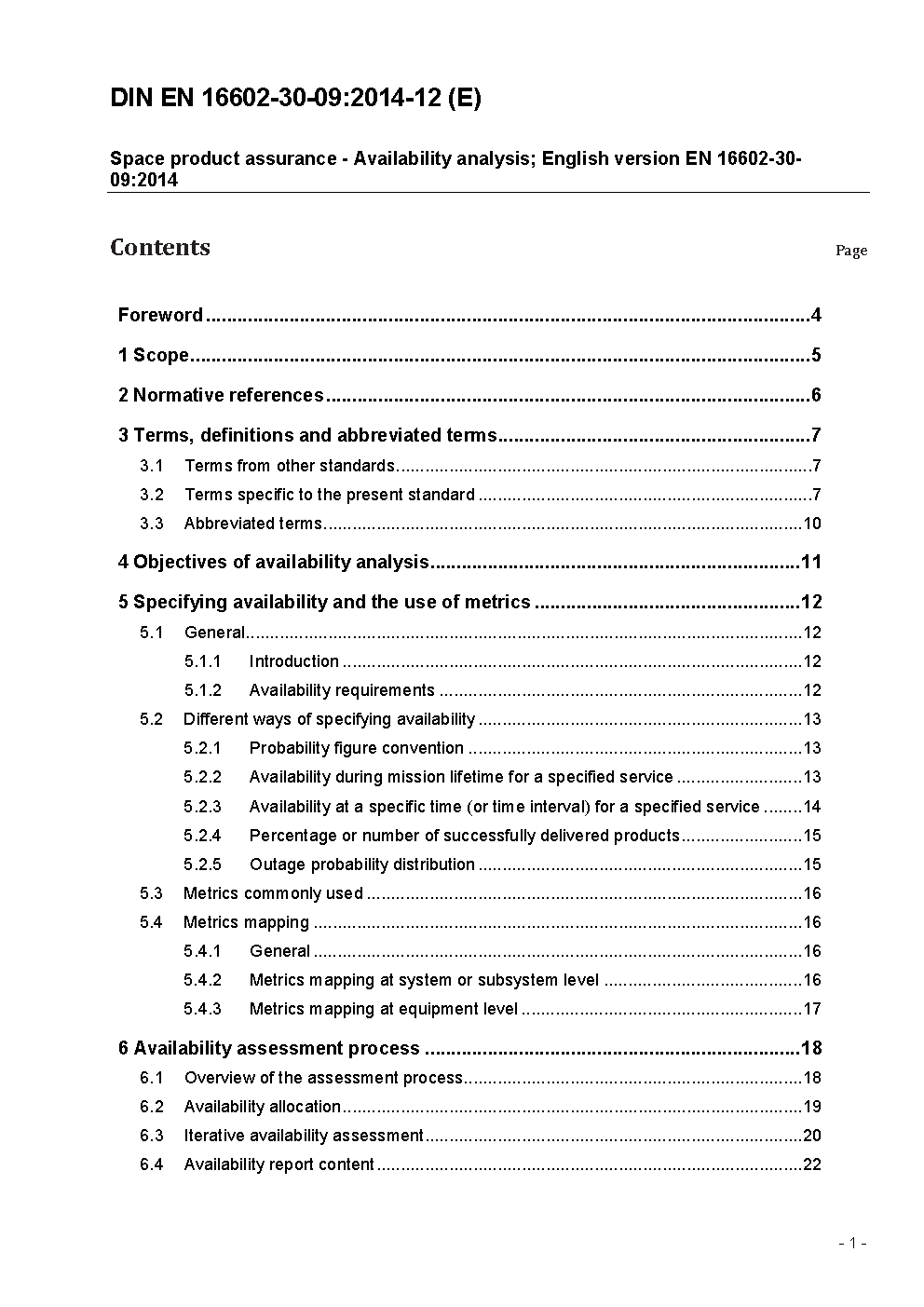 Space product assurance - Availability analysis; English version FprEN 16602-30-09:2013