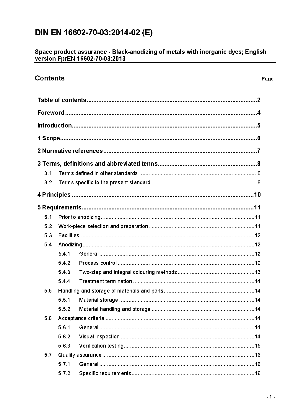 Space product assurance - Black-anodizing of metals with inorganic dyes; English version EN 16602-70-03:2014