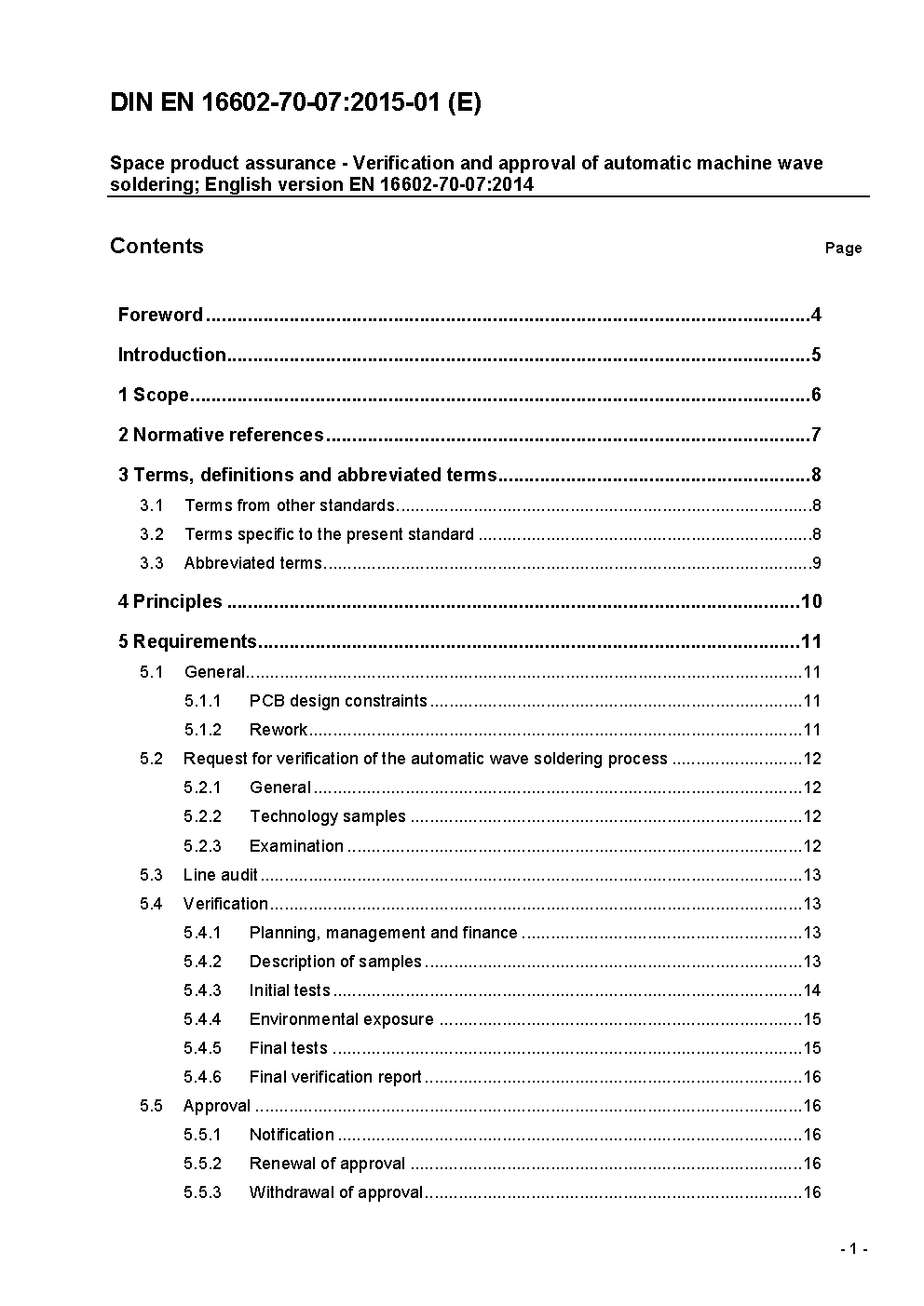 This document defines the basic requirements for the verification and approval of automatic machine wave soldering for use in spacecraft hardware. The process requirements for wave soldering of double?sided and multilayer boards are also defined.This standard may be tailored for the specific characteristic and constrains of a space project in conformance with ECSS?S?ST?00.