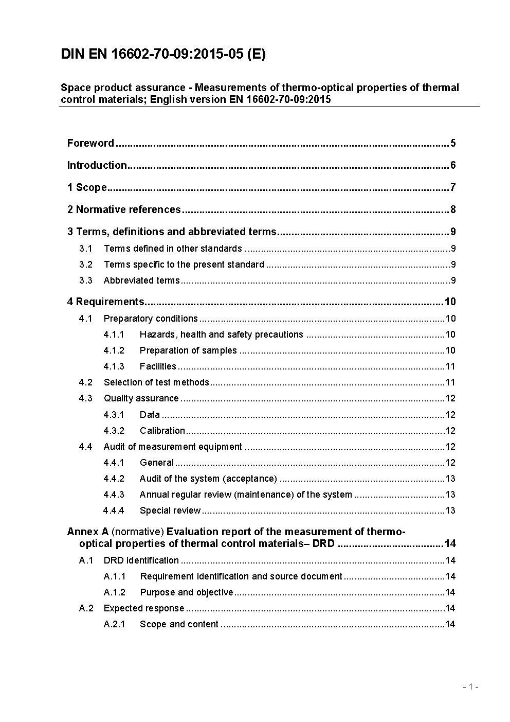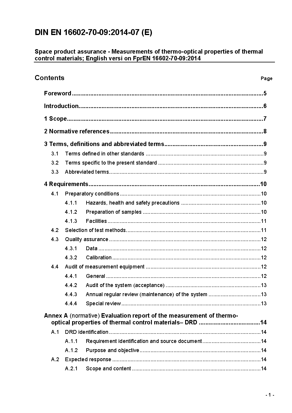 Space product assurance - Measurements of thermo-optical properties of thermal control materials; English version EN 16602-70-09:2015