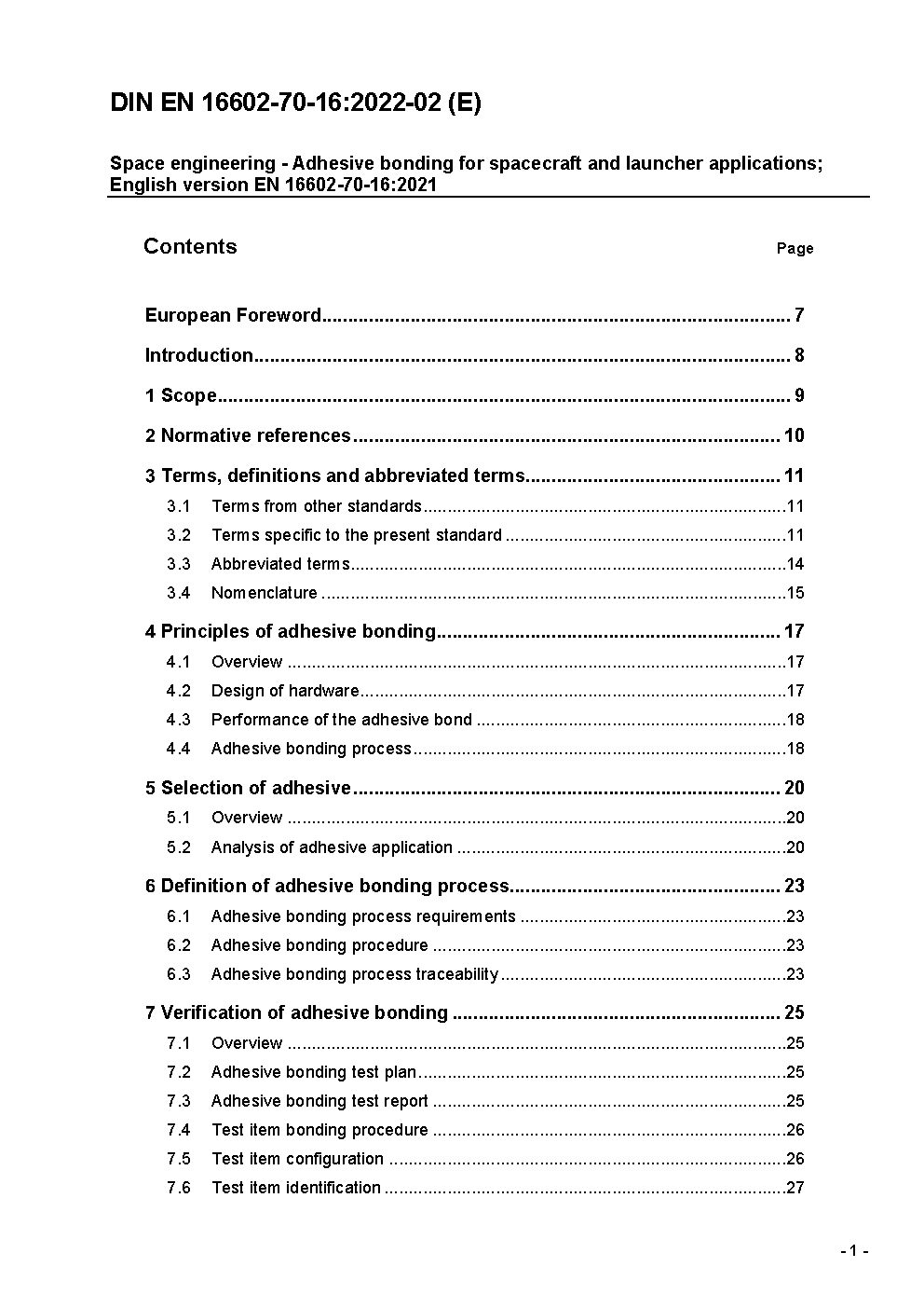 Space engineering - Adhesive bonding for spacecraft and launcher applications; English version EN 16602-70-16:2021