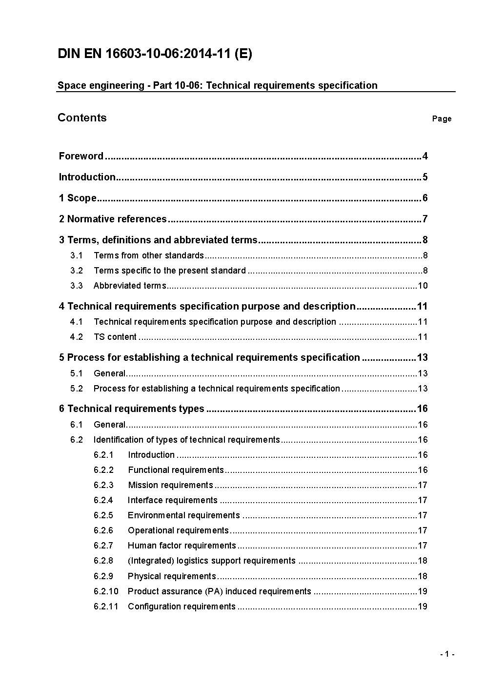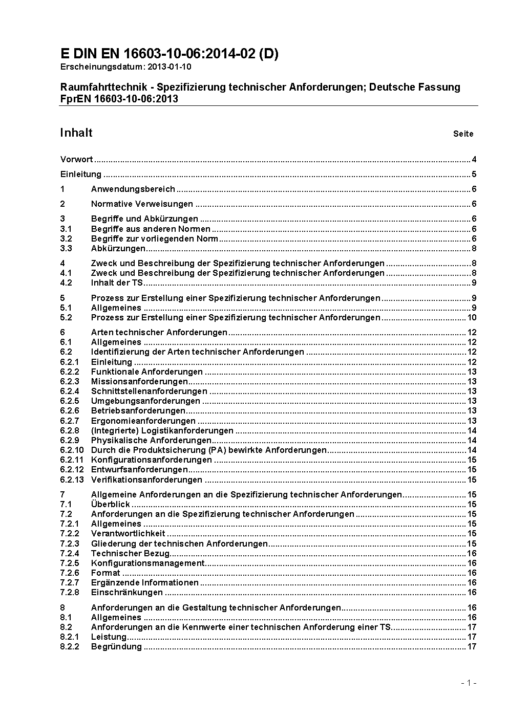 Space engineering - Technical requirements specification; German version FprEN 16603-10-06:2013