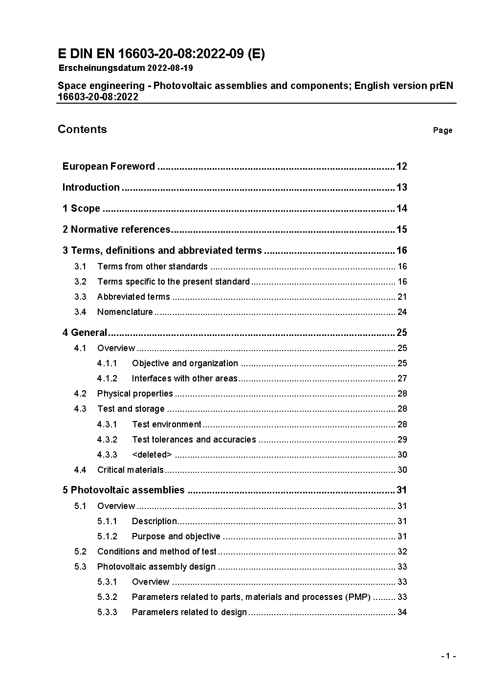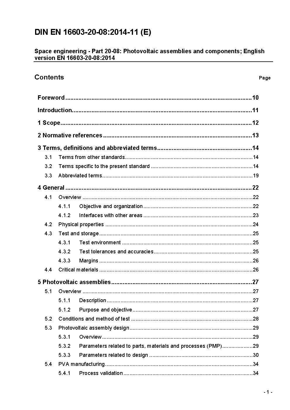 Space engineering - Photovoltaic assemblies and components; English version FprEN 16603-20-08:2013