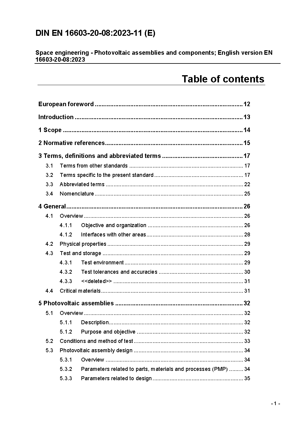 This Standard specifies the general requirements for the qualification, procurement, storage and delivery of photovoltaic assemblies, solar cell assemblies, bare solar cells, coverglasses and protection diodes suitable for space applications.This standard does not cover the particular qualification requirements for a specific mission. This Standard primarily applies to qualification approval for photovoltaic assemblies, solar cell assemblies, bare solar cells, coverglasses and protection diodes, and to the procurement of these items.This standard is limited to crystaline Silicon and single and multi-junction GaAs solar cells with a thickness of more than 50 ?m and does not include thin film solar cell technologies and poly-crystaline solar cells.This Standard does not cover the concentration technology, and especially the requirements related to the optical components of a concentrator (e. g. reflector and lens) and their verification (e. g. collimated light source).This Standard does not apply to qualification of the solar array subsystem, solar panels, structure and solar array mechanisms.This standard may be tailored for the specific characteristic and constrains of a space project in conformance with ECSS-S-ST-00.