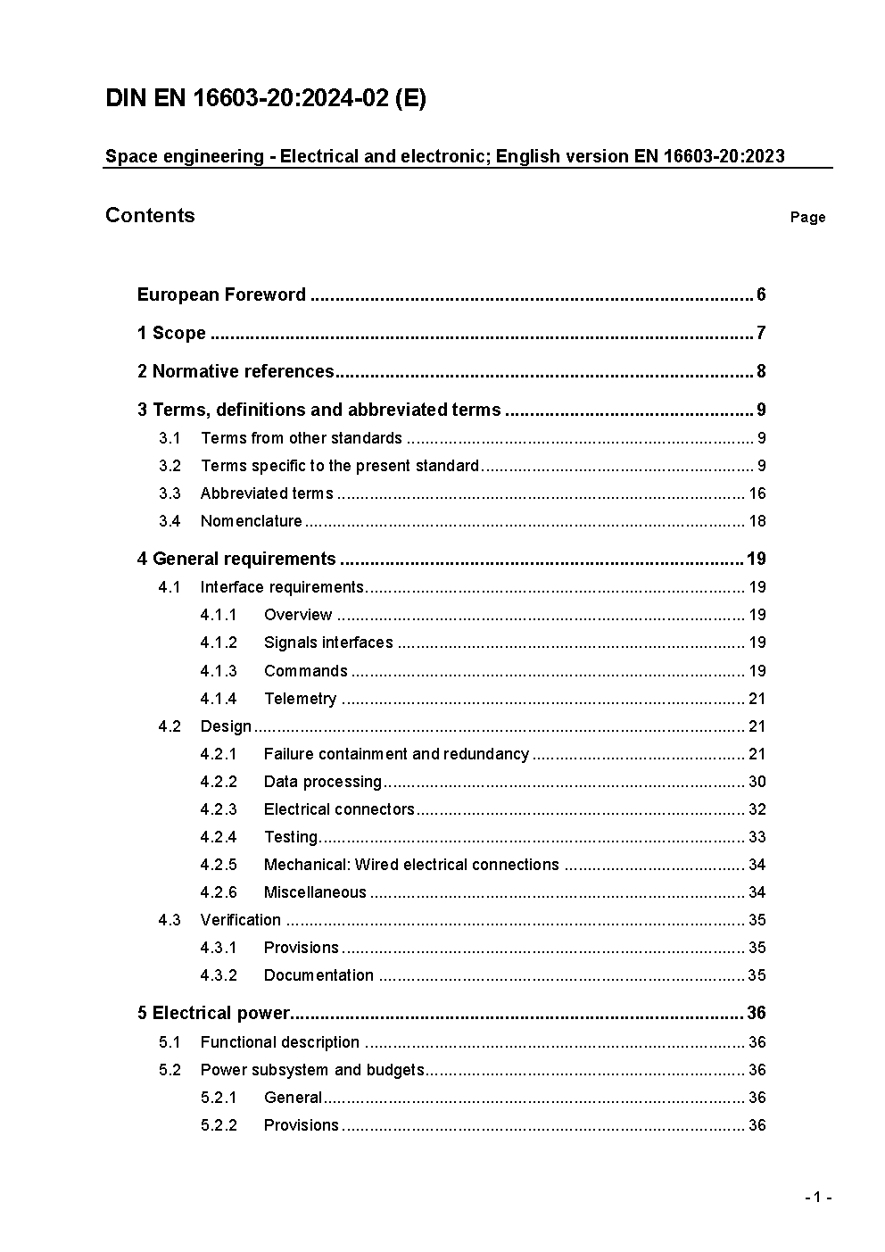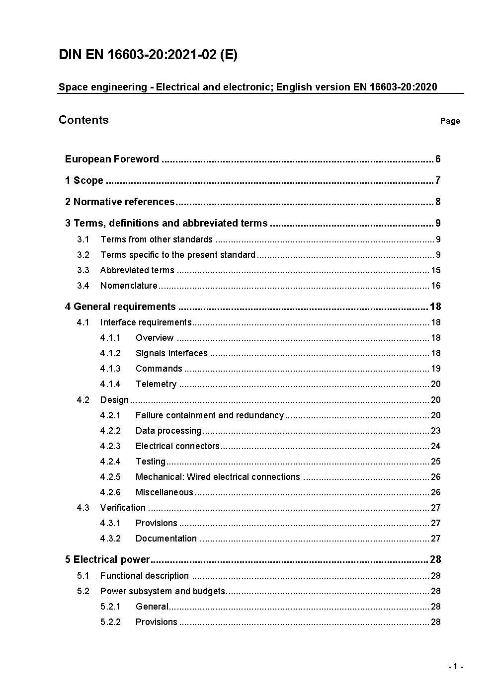 Space engineering - Electrical and electronic; English version prEN 16603-20:2021