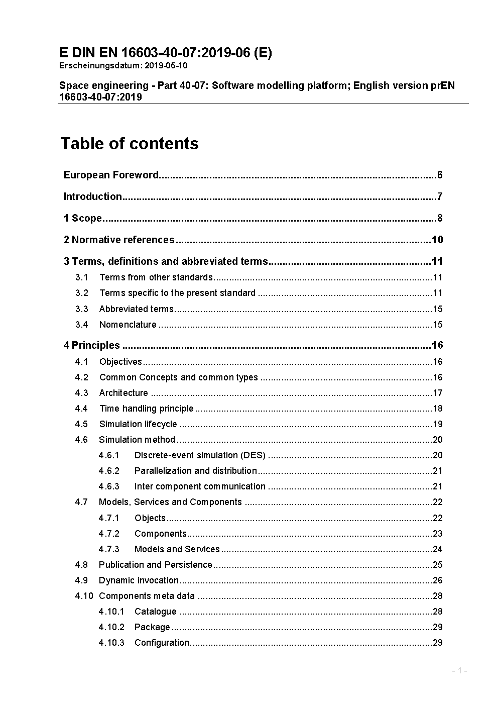 Raumfahrttechnik - Teil 40-07: Modelliersoftware-Plattform; Englische Fassung prEN 16603-40-07:2019