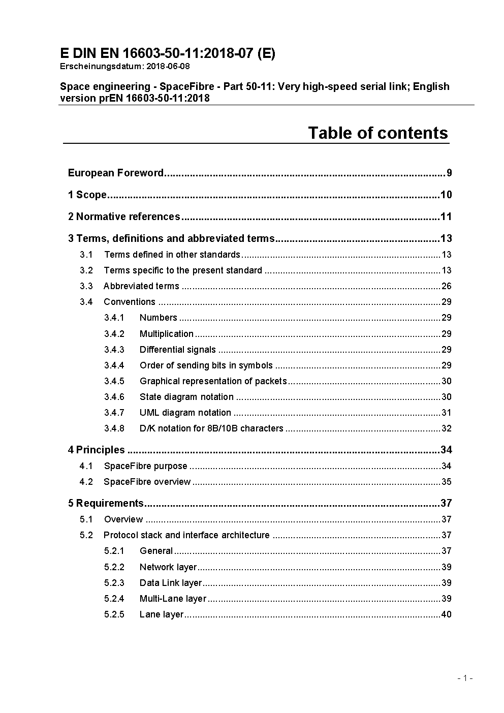 Space engineering - SpaceFibre - Part 50-11: Very high-speed serial link; English version prEN 16603-50-11:2018