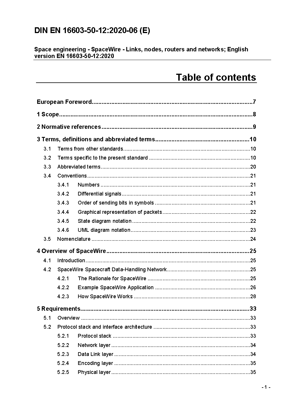 Space engineering - SpaceWire - Links, nodes, routers and networks; English version FprEN 16603-50-12:2019
