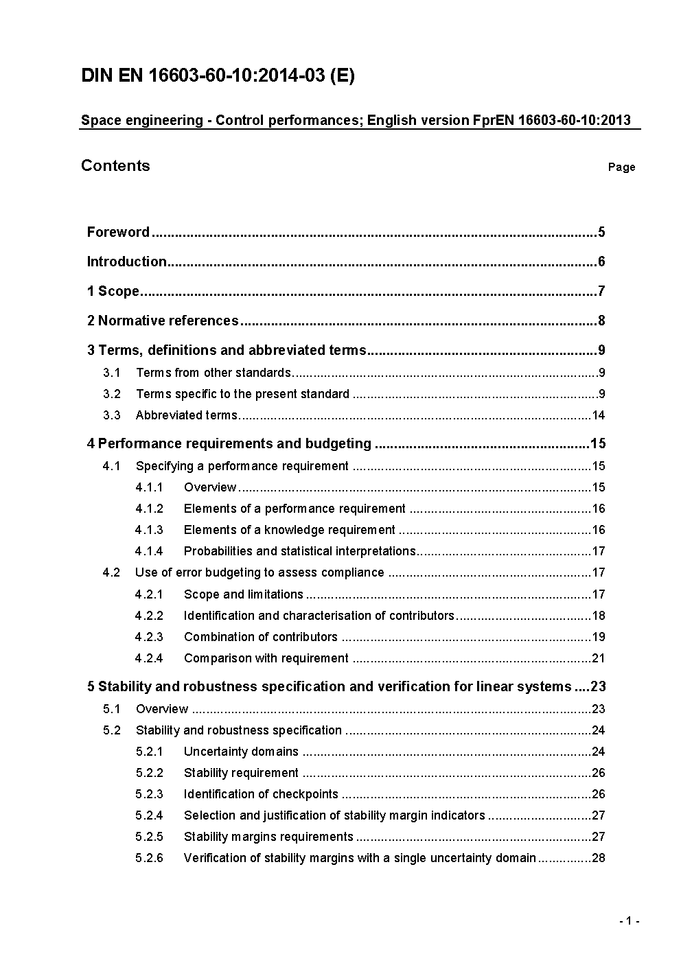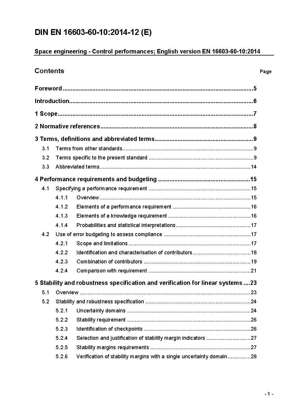 This standard deals with control systems developed as part of a space project. It is applicable to all the elements of a space system, including the space segment, the ground segment and the launch service segment.It addresses the issue of control performance, in terms of definition, specification, verification and validation methods and processes. The standard defines a general framework for handling performance indicators, which applies to all disciplines involving control engineering, and which can be applied as well at different levels ranging from equipment to system level. It also focuses on the specific performance indicators applicable to the case of closed-loop control systems ? mainly stability and robustness.Rules are provided for combining different error sources in order to build up a performance error budget and use this to assess the compliance with a requirement.NOTE 1 Although designed to be general, one of the major application field for this Standard is spacecraft pointing. This justifies why most of the examples and illustrations are related to AOCS problems. NOTE 2 Indeed the definitions and the normative clauses of this Standard apply to pointing performance; nevertheless fully specific pointing issues are not addressed here in detail (spinning spacecraft cases for example). Complementary material for pointing error budgets can be found in ECSS-E-HB-60-10.NOTE 3 For their own specific purpose, each entity (ESA, national agencies, primes) can further elaborate internal documents, deriving appropriate guidelines and summation rules based on the top level clauses gathered in this ECSS-E-ST-60-10 standard.This standard may be tailored for the specific characteristic and constrains of a space project in conformance with ECSS-S-ST-00.