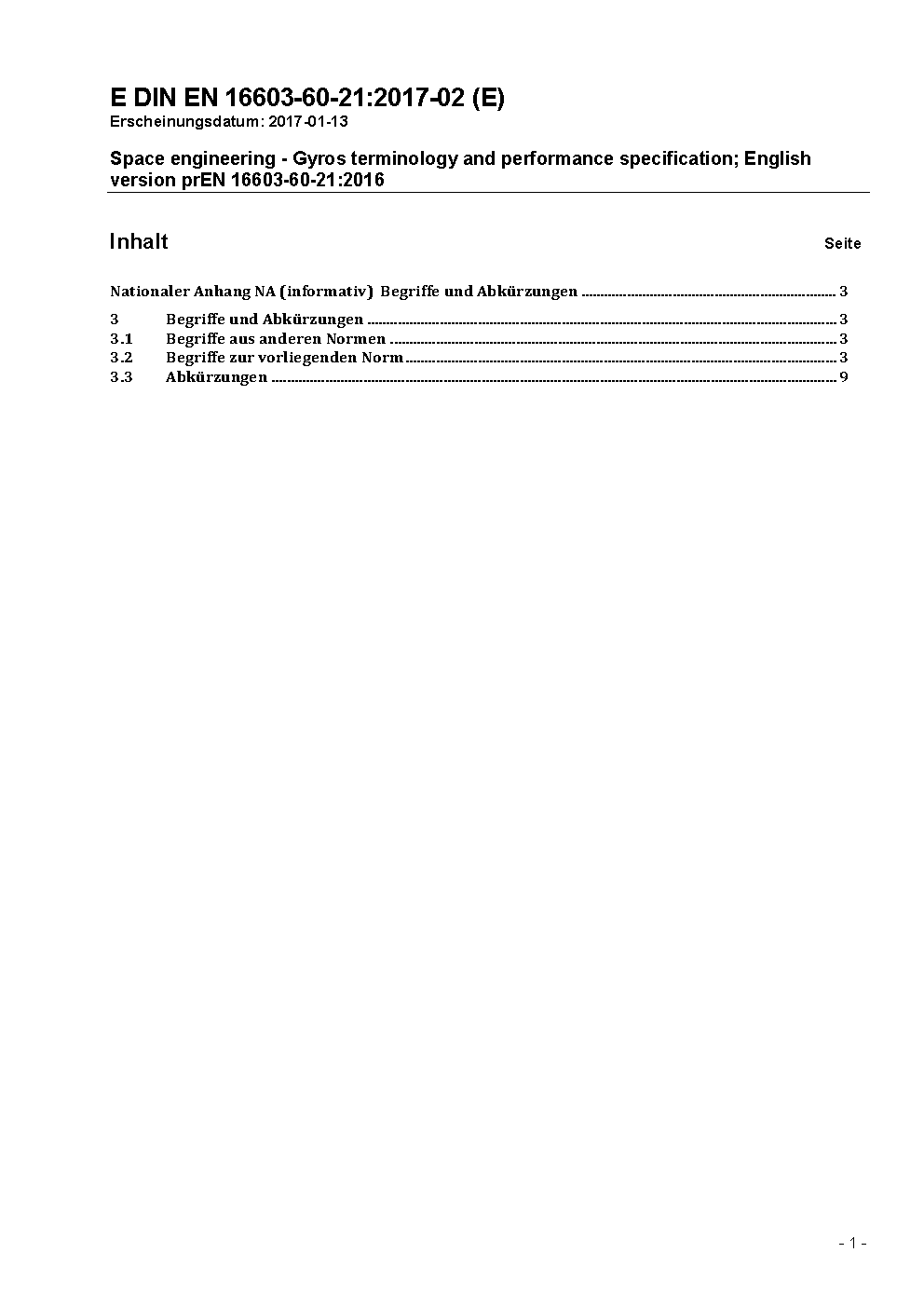 Space engineering - Gyros terminology and performance specification; English version EN 16603-60-21:2018