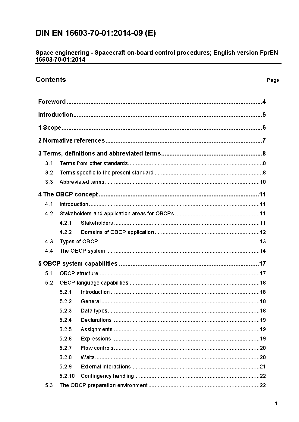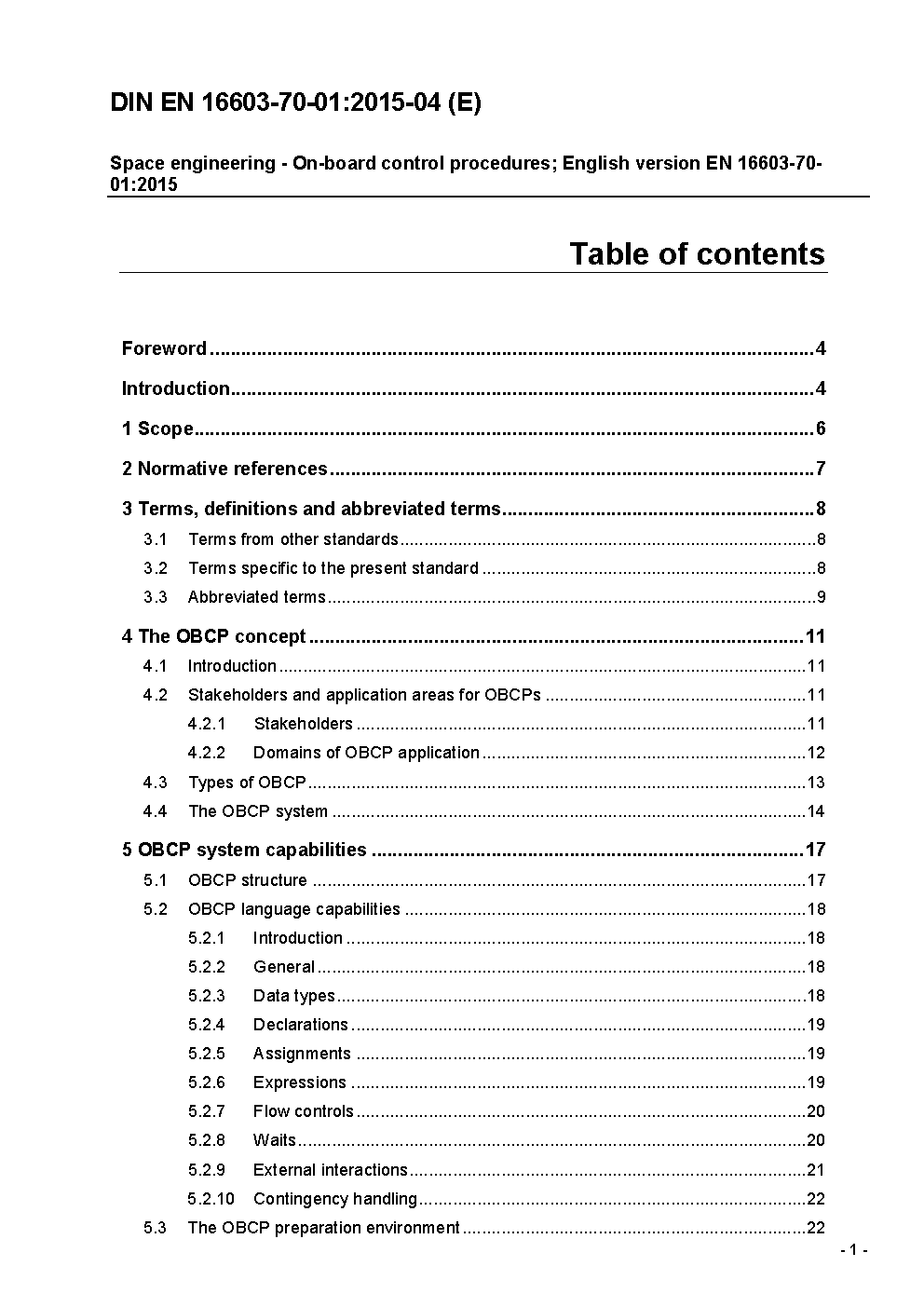 Space engineering - On-board control procedures; English version EN 16603-70-01:2015