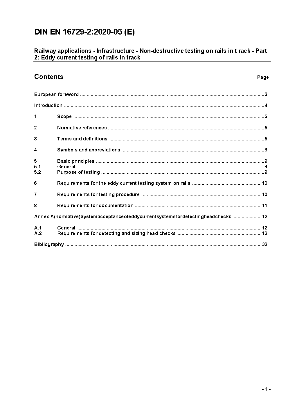 This part of this European Standard is applicable to testing of rails installed in track for detecting rail surface cracks.This part of this European Standard applies to testing equipment in inspection-trains or reprofiling machines and manual systems.This part of this European Standard specifies the requirement for testing principles and systems in order to produce comparable results in respect to the location and the characteristic of surface cracks.This part of this European Standard is not aiming to give any guidelines for managing the result of eddy current rail testing.This part of this European Standard does not define the requirements for vehicle acceptance. This part of this European Standard is not concerned with production testing of rails in a production plant.This part of this European Standard applies only to rail profiles meeting the requirements of EN 13674-1.