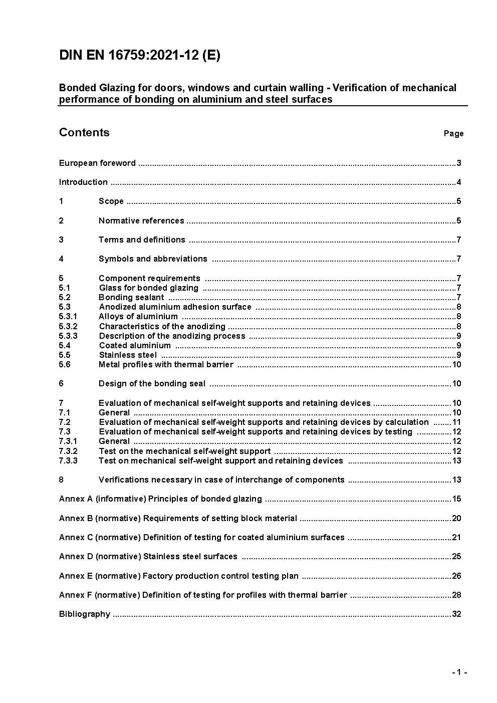 This European Standard specifies the method to be used to verify the mechanical performance of bonded glazing for doors, windows and curtain walling (see examples in Annex A) and its durability. NOTE 1 Bonded glazing formerly known as structural sealant glazing SSGS. Bonded glazing can be incorporated into the product as follows: - either vertically; or - up to 83° from the vertical (positive slope); or - up to 15° from the vertical onto the building face (negative slope). NOTE 2 A wall has a positive slope if its outer surface faces upwards. NOTE 3 Specific additional safety provisions may nationally apply. It gives information to the manufacturer to comply with requirements regarding design, factory production control and assembly rules. The parts concerned in the testing are the metal profile (anodized and coated aluminium, stainless steel), the glass coated or not which shall be bonded, the bonding sealant and mechanical restraints when required. The testing does not apply to other framing materials. This standard does not apply to glass-to-glass bonding and insulating glass units.