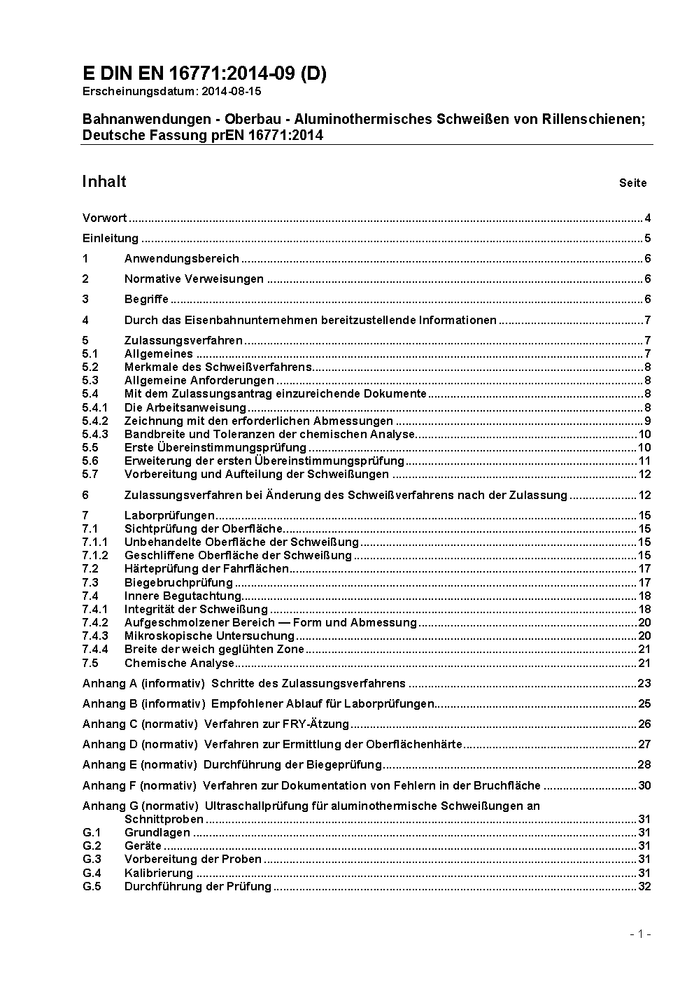 Railway applications - Infrastructure - Aluminothermic welding of grooved rails; German version EN 16771:2016