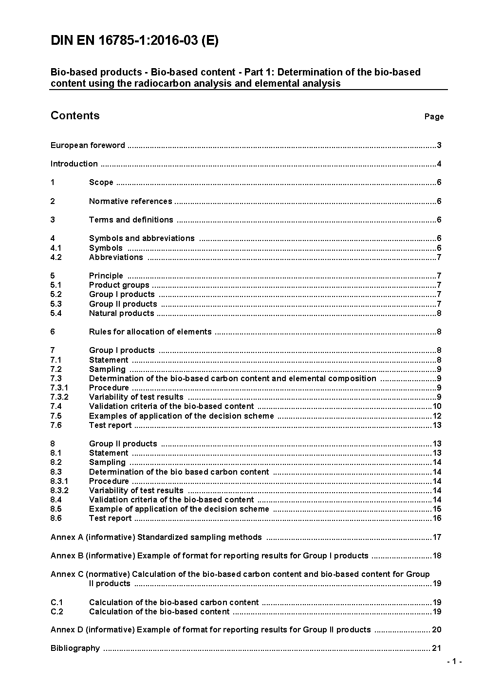 Bio-based products - Bio-based content - Part 1: Determination of the bio-based content using the radiocarbon analysis and elemental analysis; German version EN 16785-1:2015