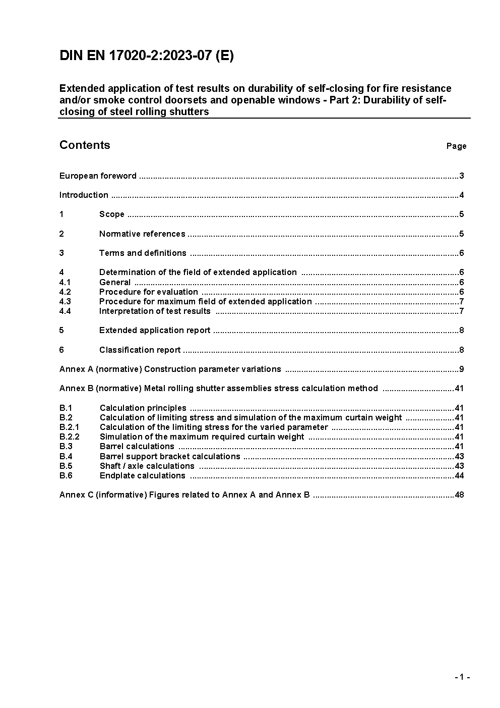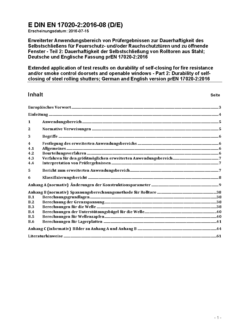 Extended application of test results on durability of self-closing for fire resistance and/or smoke control doorsets and openable windows - Part 2: Durability of self-closing of steel rolling shutters; German and English version prEN 17020-2:2016