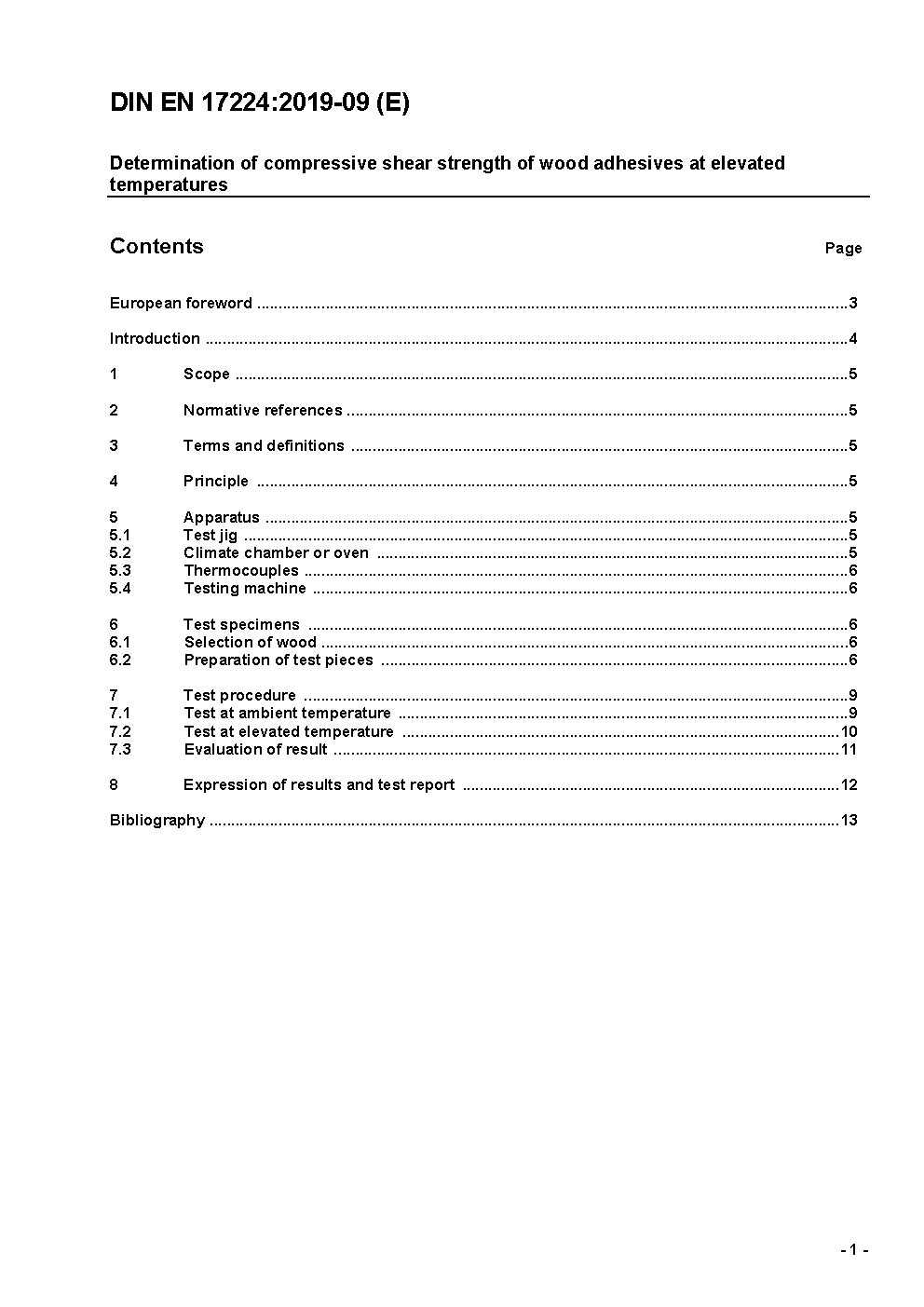 Determination of compressive shear strength of wood adhesives at elevated temperatures; German version EN 17224:2019