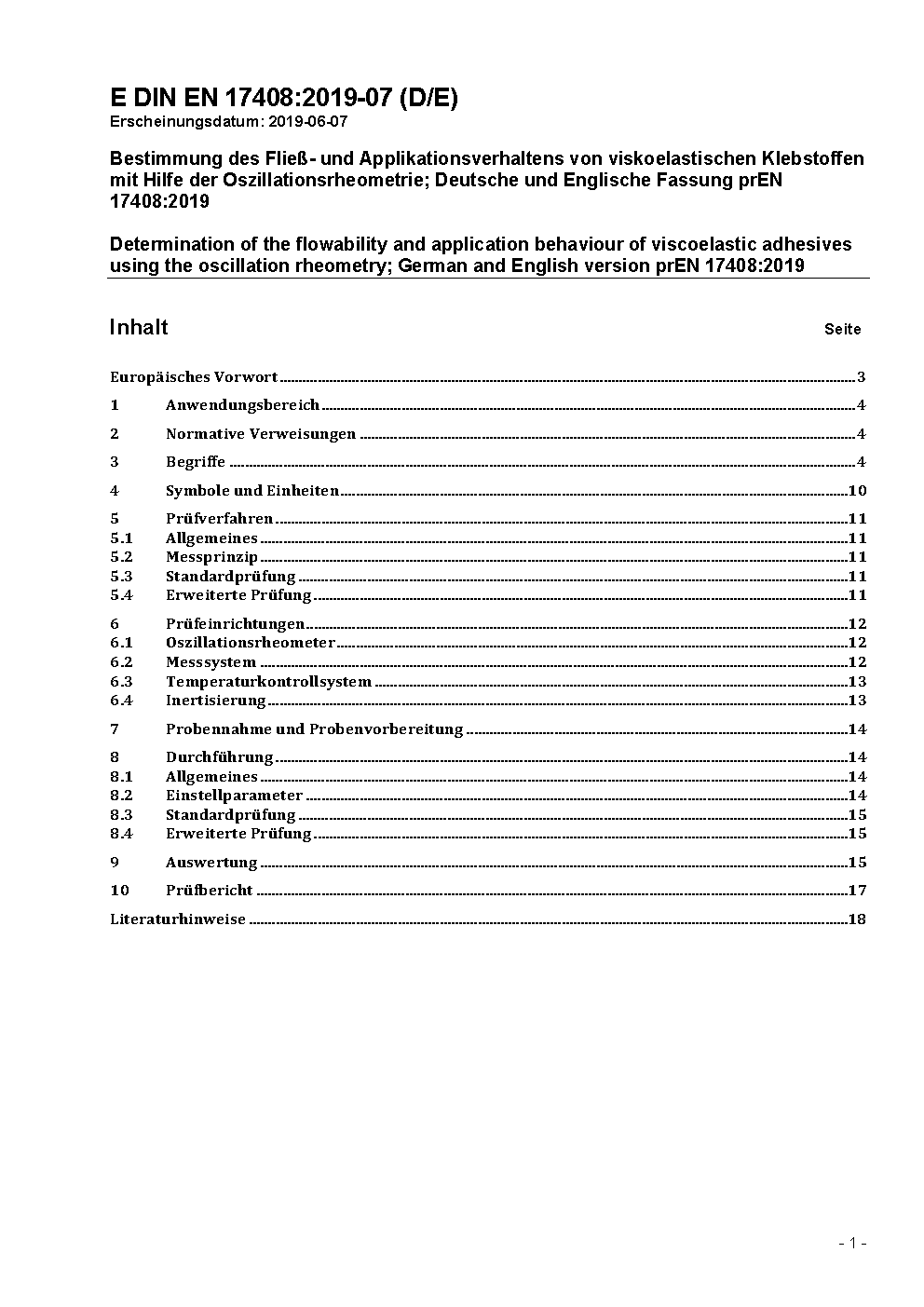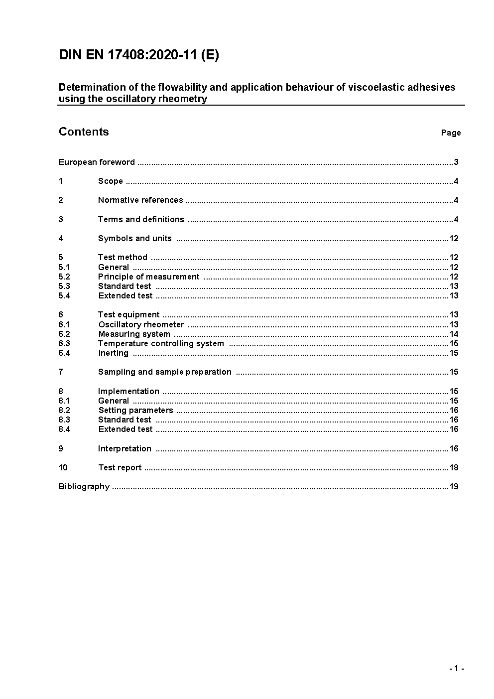 Determination of the flowability and application behaviour of viscoelastic adhesives using the oscillatory rheometry; German version EN 17408:2020