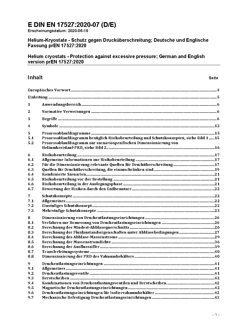 Helium cryostats - Protection against excessive pressure; German version EN 17527:2021