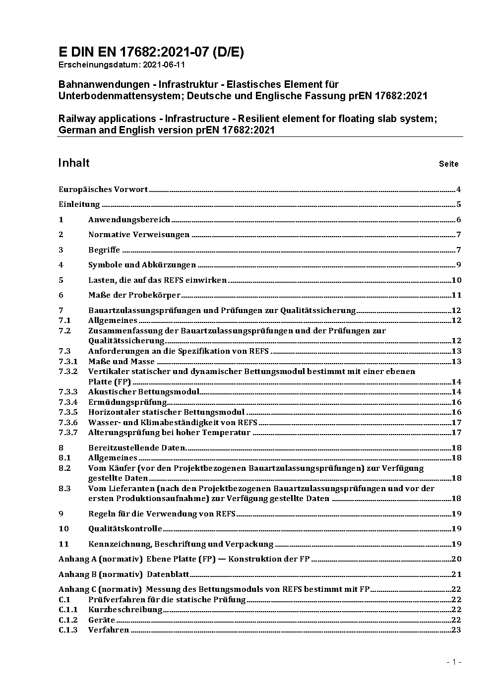 Bahnanwendungen - Infrastruktur - Elastisches Element für Masse-Feder-Systeme; Deutsche Fassung EN 17682:2022