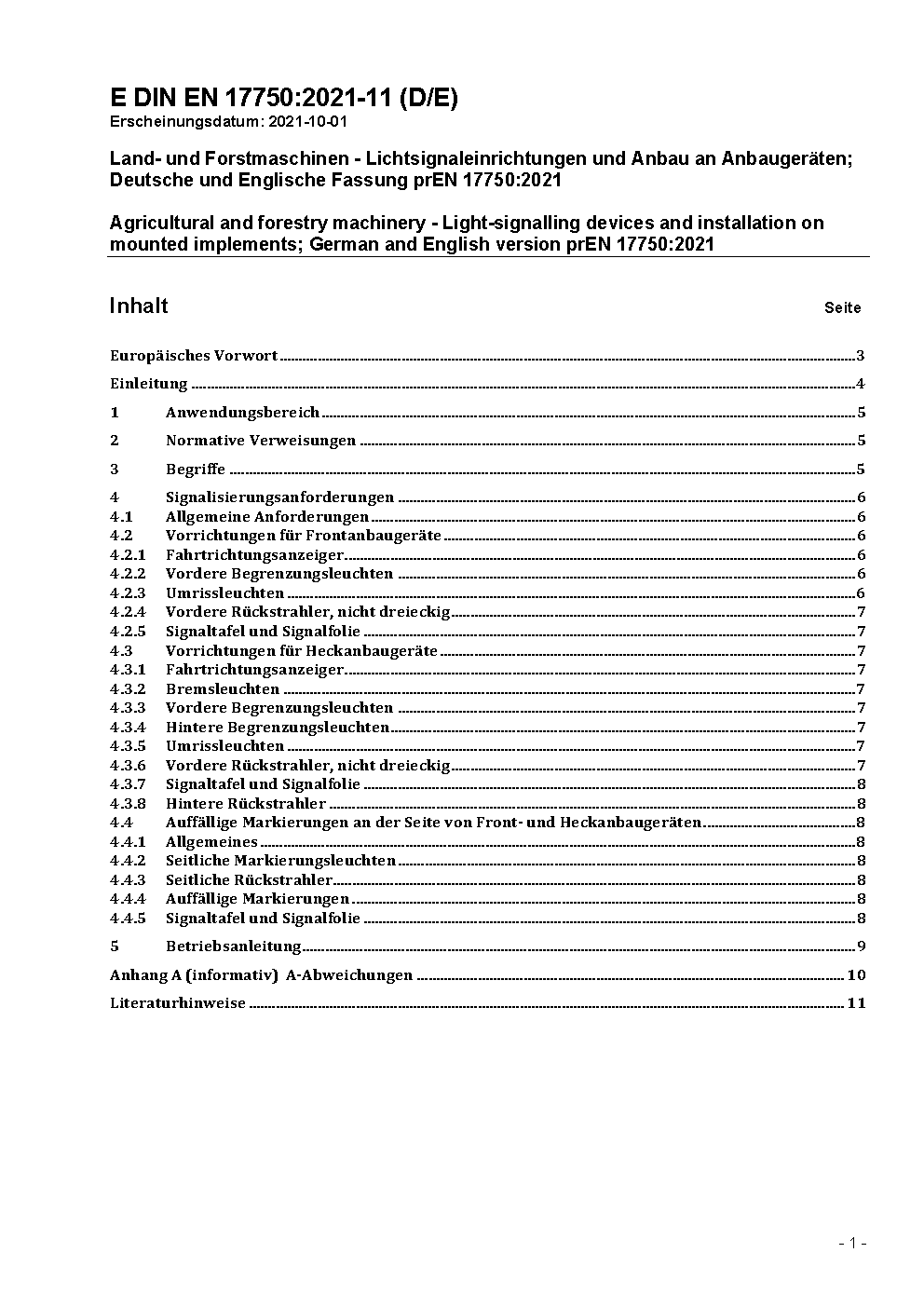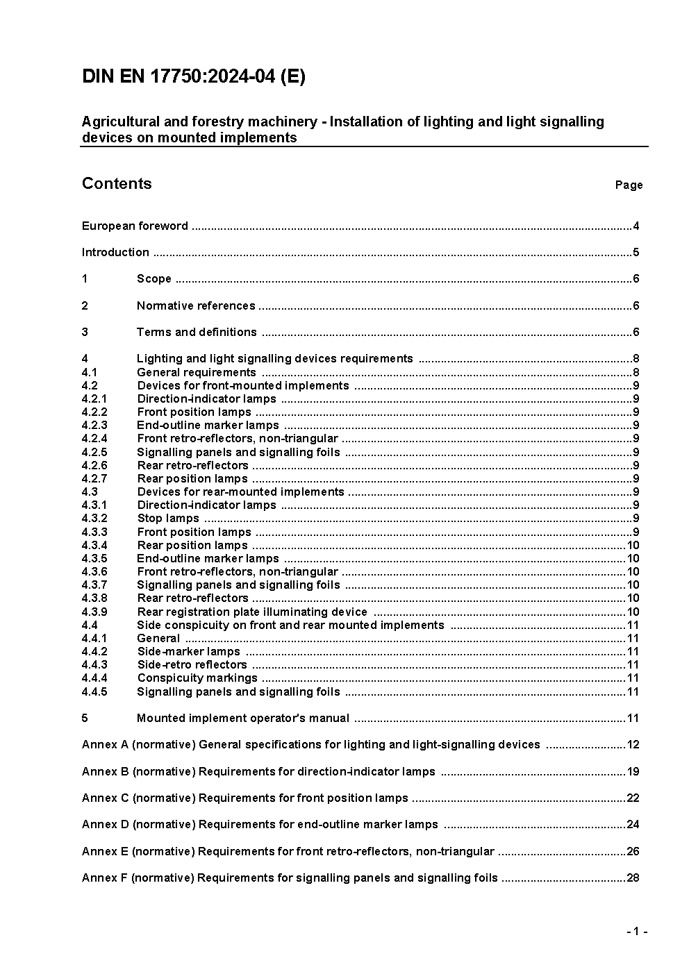 Land- und Forstmaschinen - Lichtsignaleinrichtungen und Anbau an Anbaugeräten; Deutsche Fassung EN 17750:2023