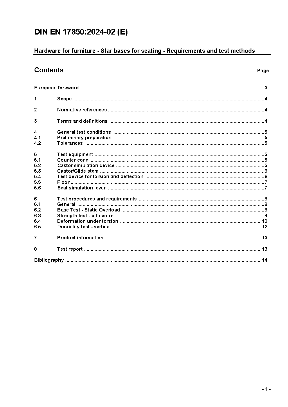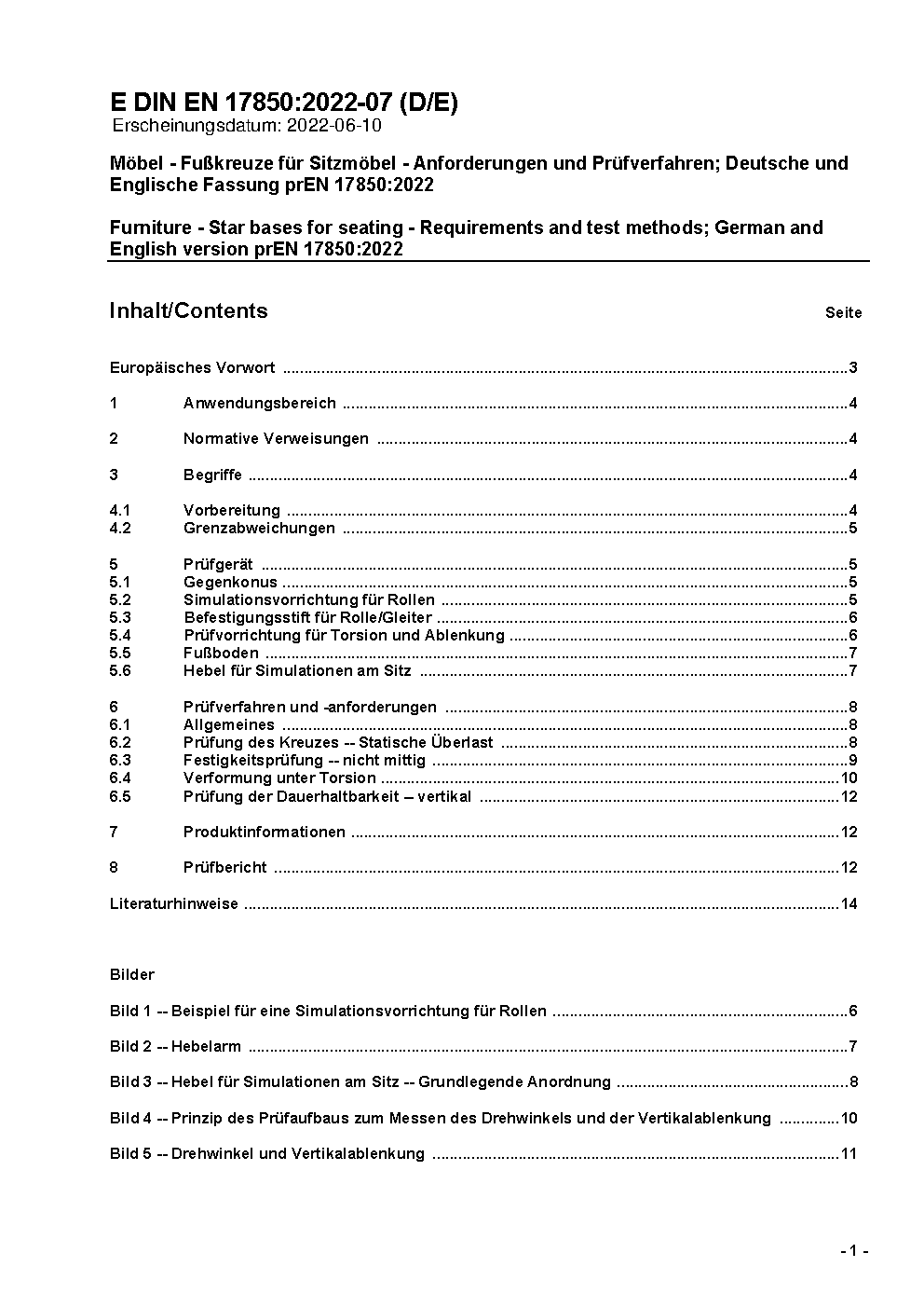 Furniture - Star bases for seating - Requirements and test methods; German and English version prEN 17850:2022