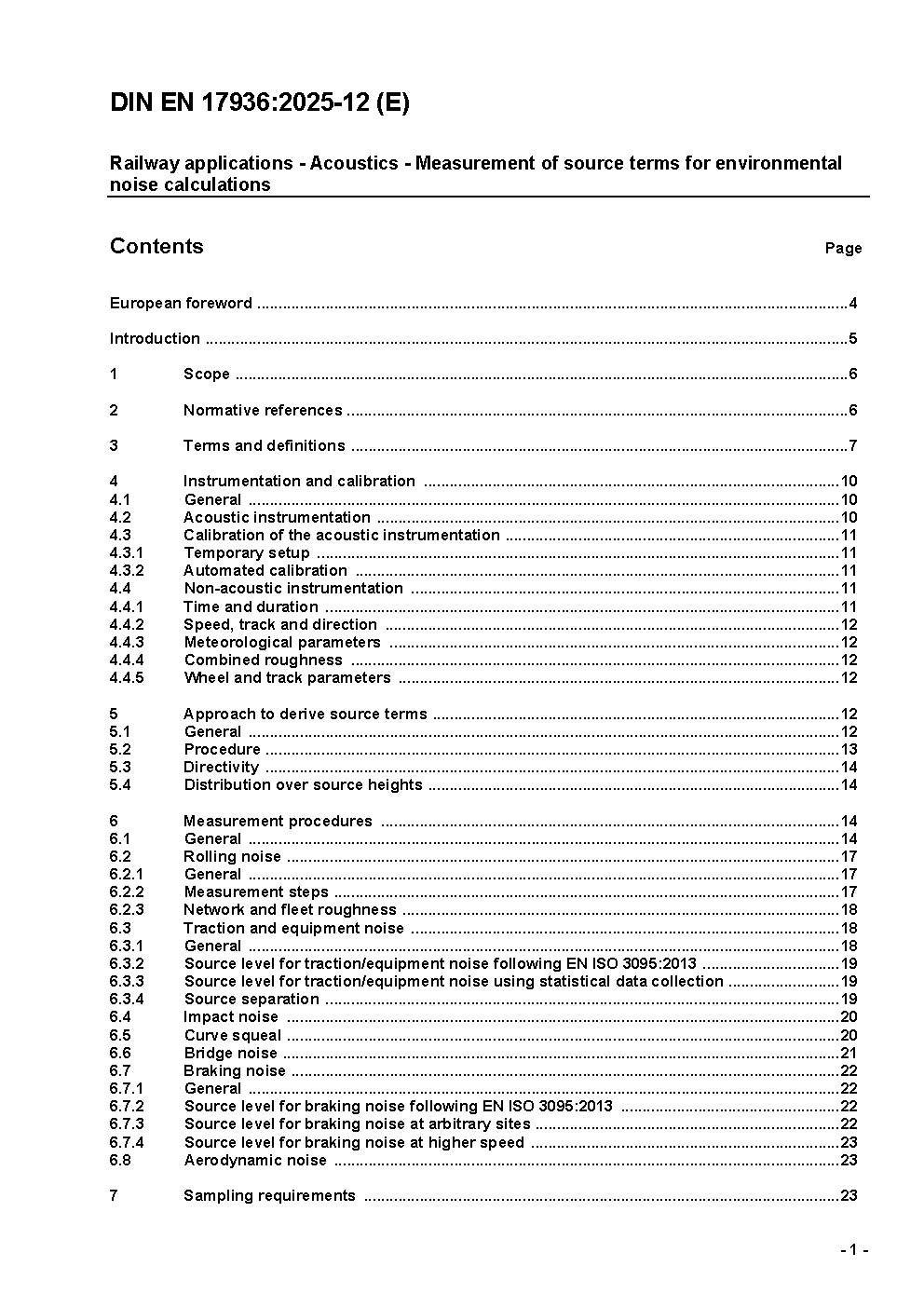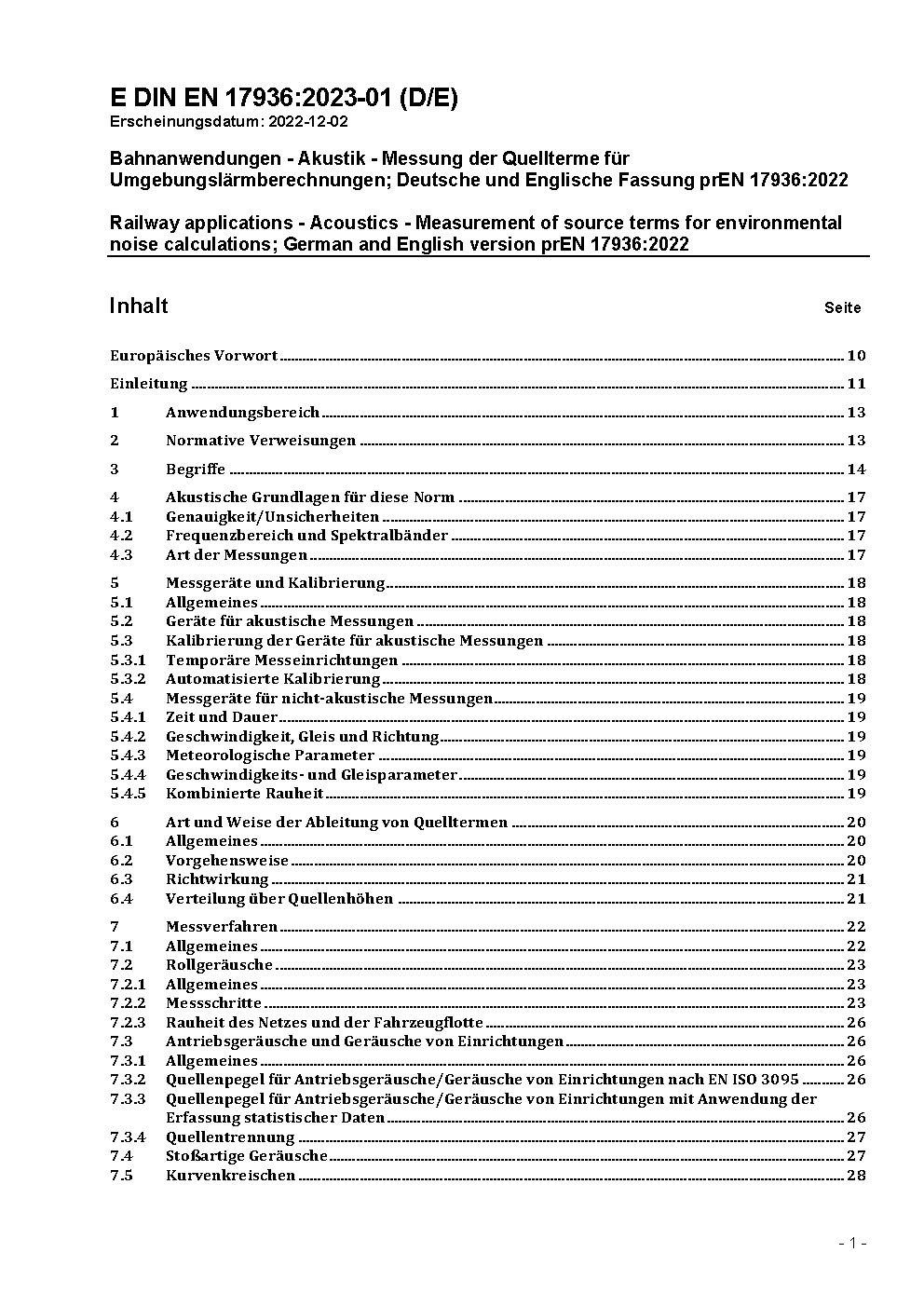 Bahnanwendungen - Akustik - Messung der Quellterme für Umgebungslärmberechnungen; Deutsche und Englische Fassung prEN 17936:2022