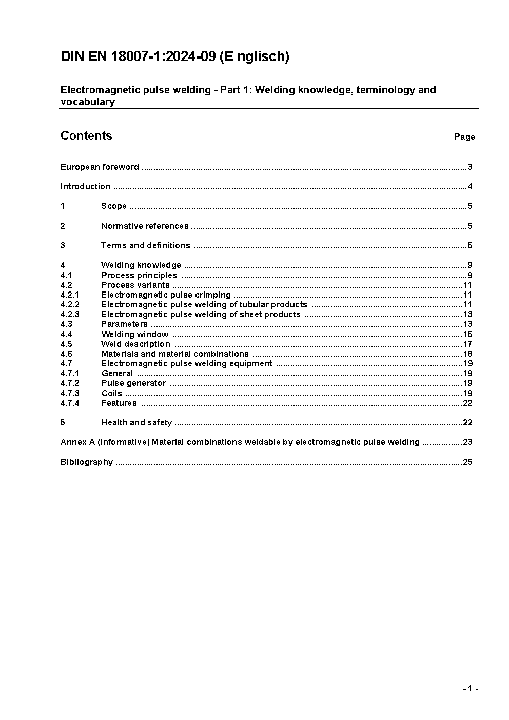 Electromagnetic pulse welding - Part 1: Welding knowledge, terminology and vocabulary; German version EN 18007-1:2024