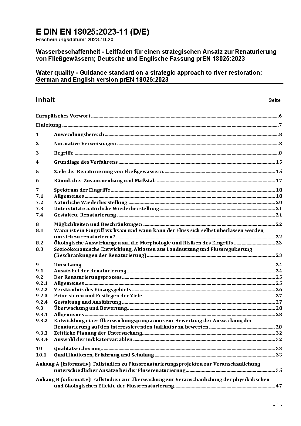 Wasserbeschaffenheit - Leitfaden für einen strategischen Ansatz zur Renaturierung von Fließgewässern; Deutsche und Englische Fassung prEN 18025:2023