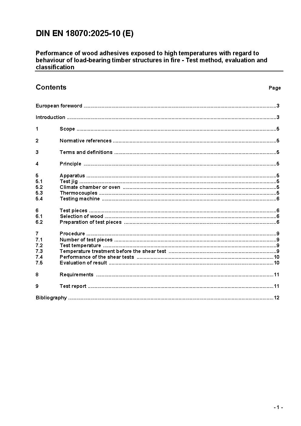 Performance of wood adhesives at high temperatures and fire - Test methods, evaluation and classification; German and English version prEN 18070:2024