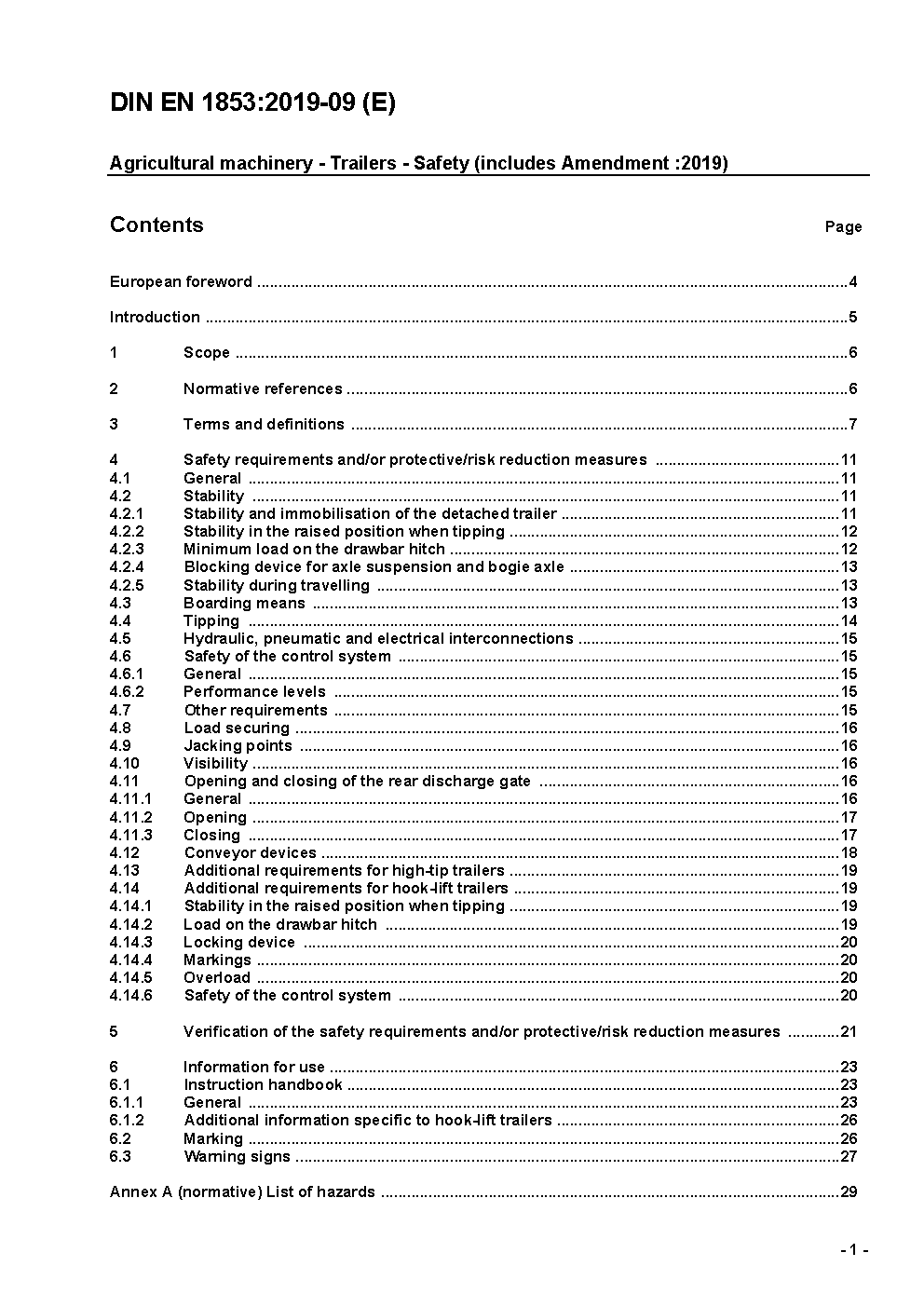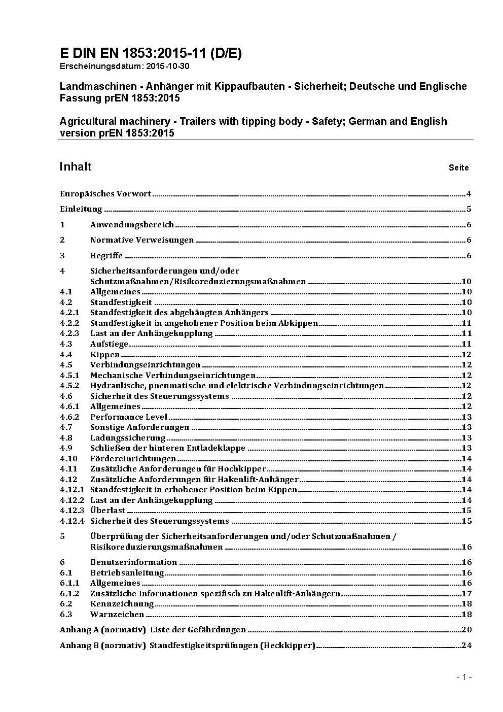 Agricultural machinery - Trailers with tipping body - Safety; German and English version prEN 1853:2015