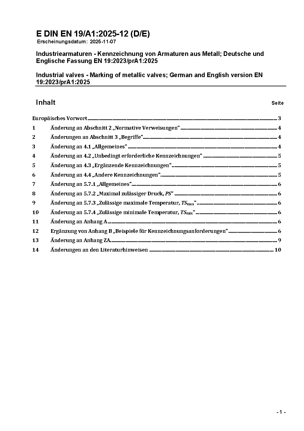 Prévu pour remplacer DIN EN 19 (2002-07).