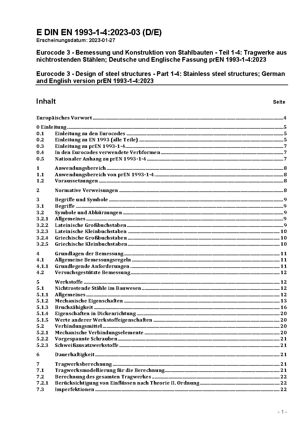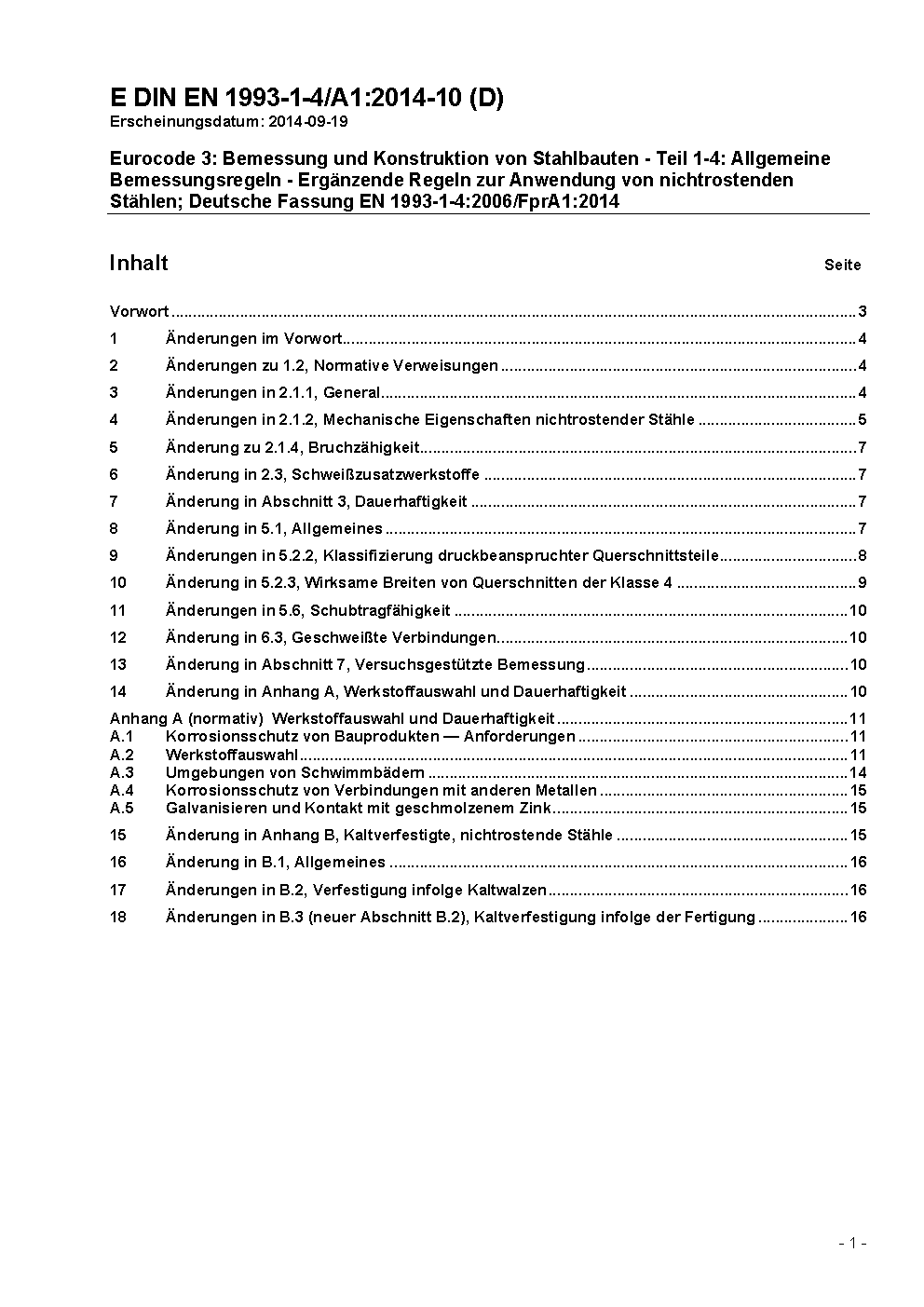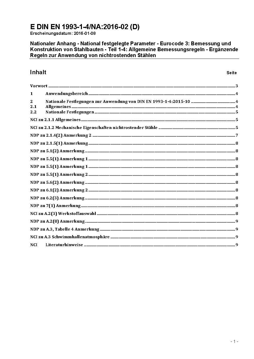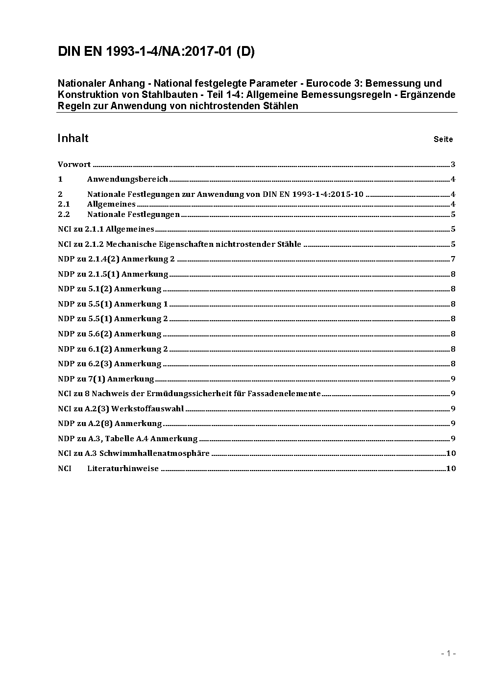 Nationaler Anhang - National festgelegte Parameter - Eurocode 3: Bemessung und Konstruktion von Stahlbauten - Teil 1-4: Allgemeine Bemessungsregeln - Ergänzende Regeln zur Anwendung von nichtrostenden Stählen / Achtung: Gilt in Verbindung mit DIN EN 1993-1-4 (2015-10)