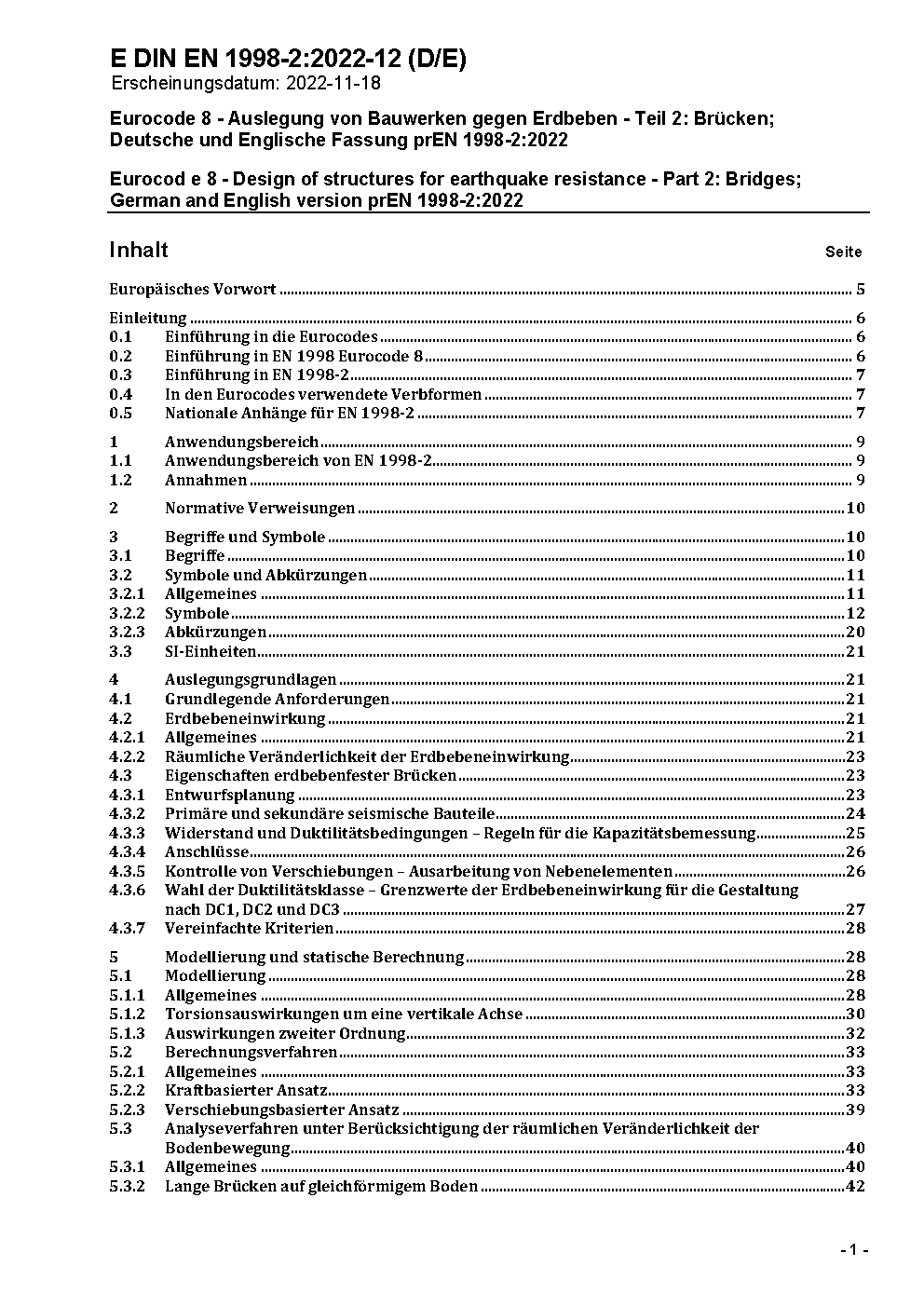 This Standard covers the seismic design of bridges in which the horizontal seismic actions are mainly resisted through bending of the piers or at the abutments; i.e. of bridges composed of vertical or nearly vertical pier systems supporting the traffic deck superstructure. It is also applicable to the seismic design of cable-stayed and arched bridges, although its provisions should not be considered as fully covering these cases.