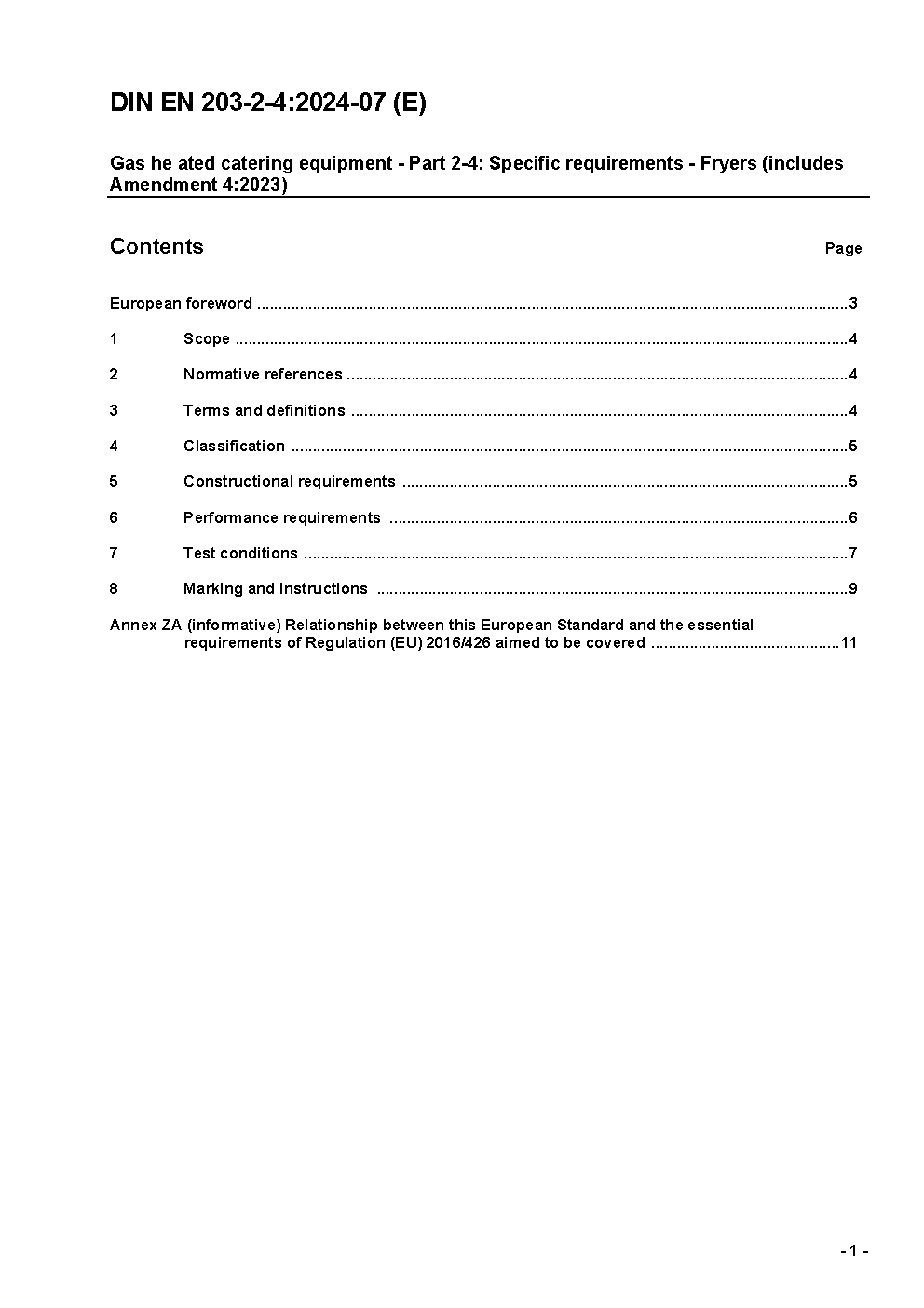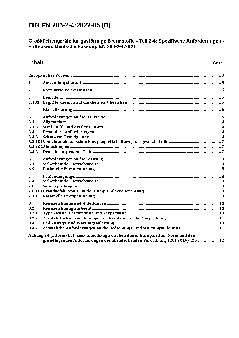 This standard specify DIN EN 203-1 about requirements and testing at gas fired fryers.