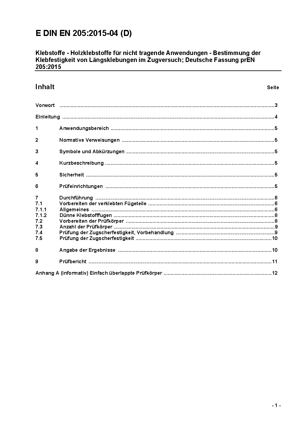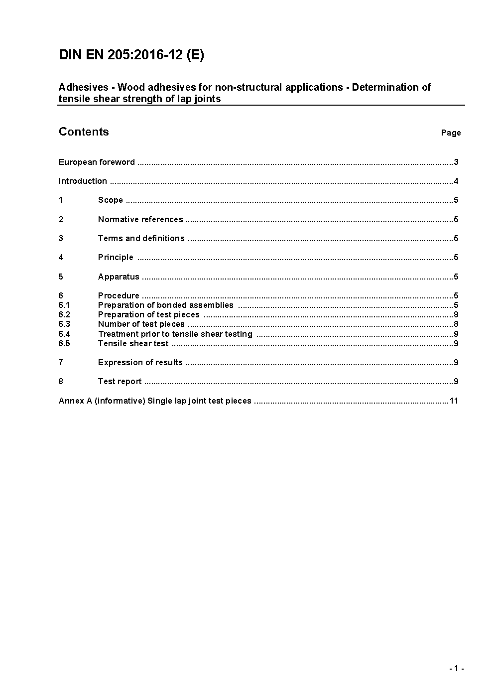 Adhesives - Wood adhesives for non-structural applications - Determination of tensile shear strength of lap joints; German version EN 205:2016