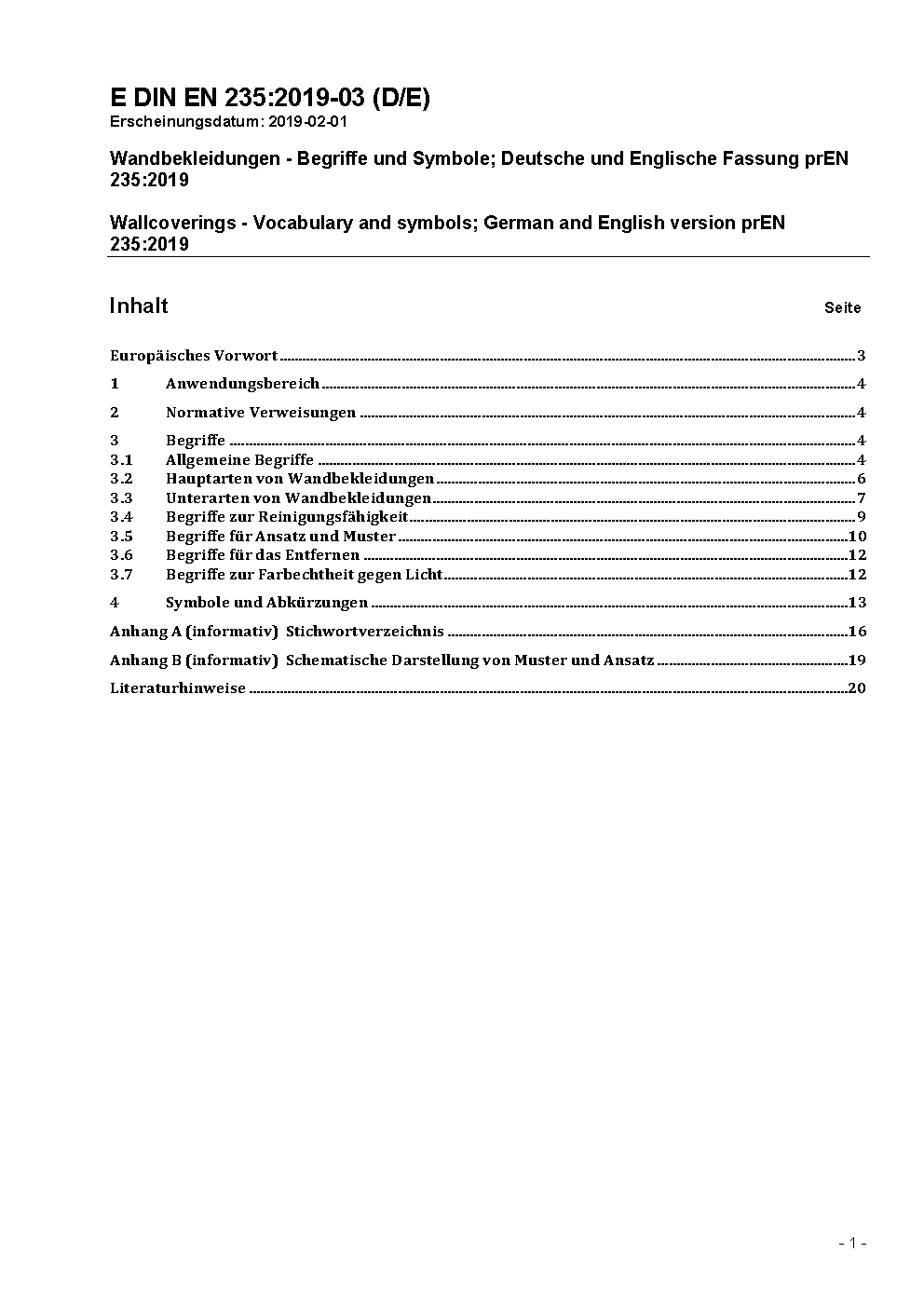 Wall coverings - Vocabulary and symbols; German version EN 235:2001