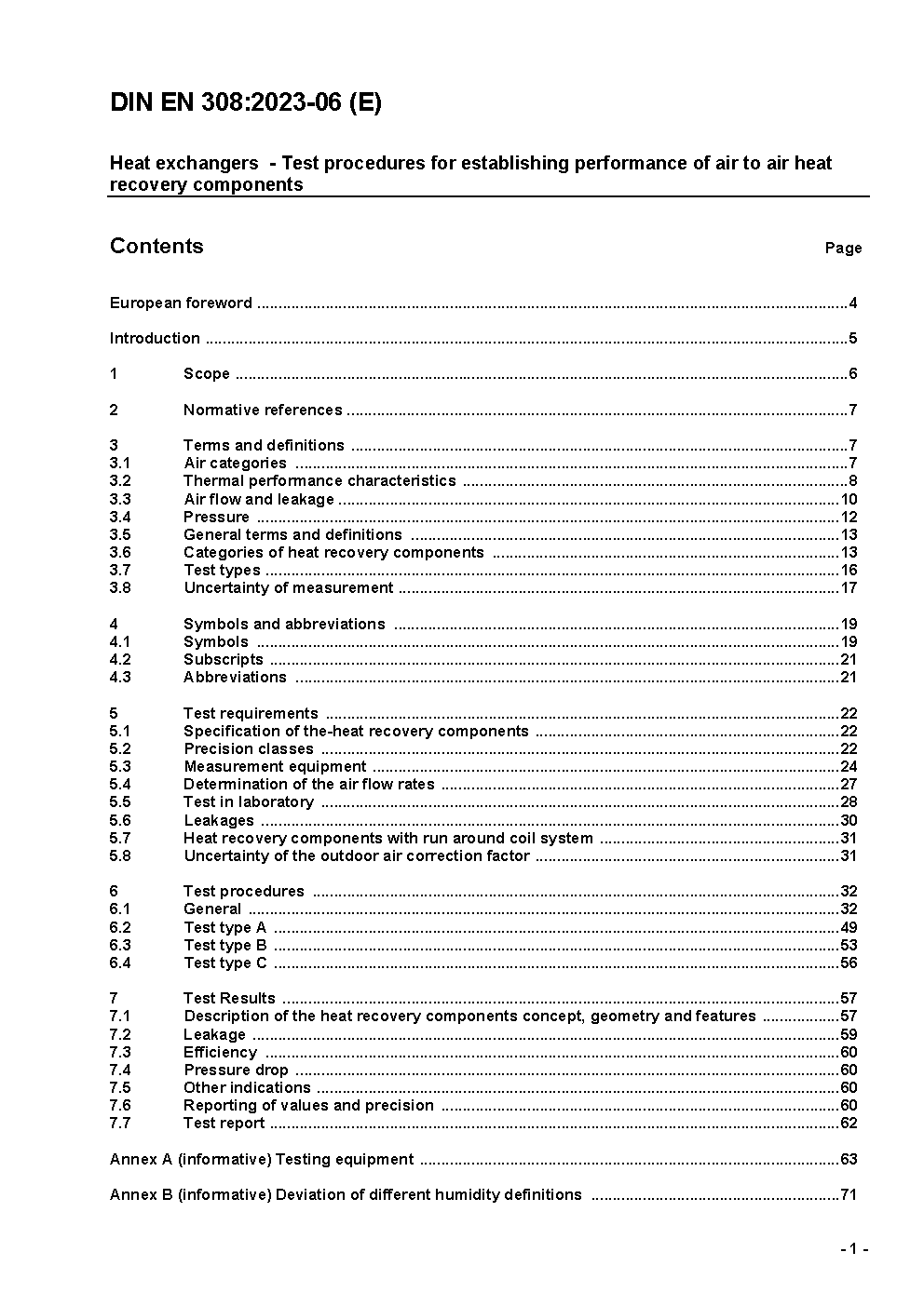 This document specifies methods to be used for laboratory testing of air-to-air heat recovery devices. It gives test requirements and procedures for performing such tests and specifies input criteria required for tests to verify performance data given by the manufacturer. It also applies to heat recovery that are powered by exhaust air.