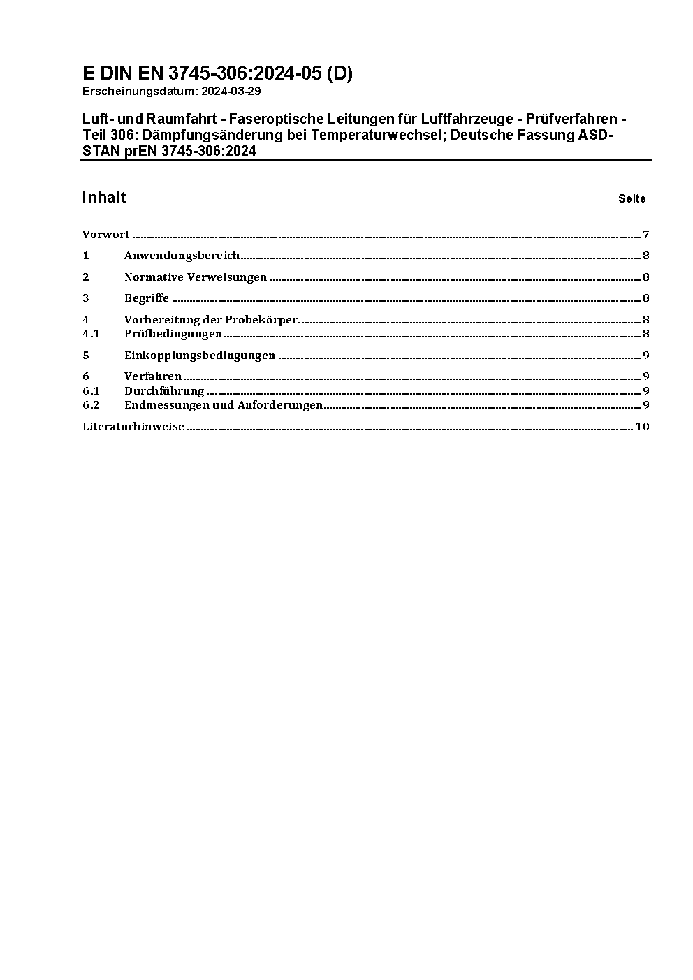 Aerospace series - Fibres and cables, optical, aircraft use - Test methods - Part 306: Variation of attenuation during temperature cycling; German and English version EN 3745-306:2005
