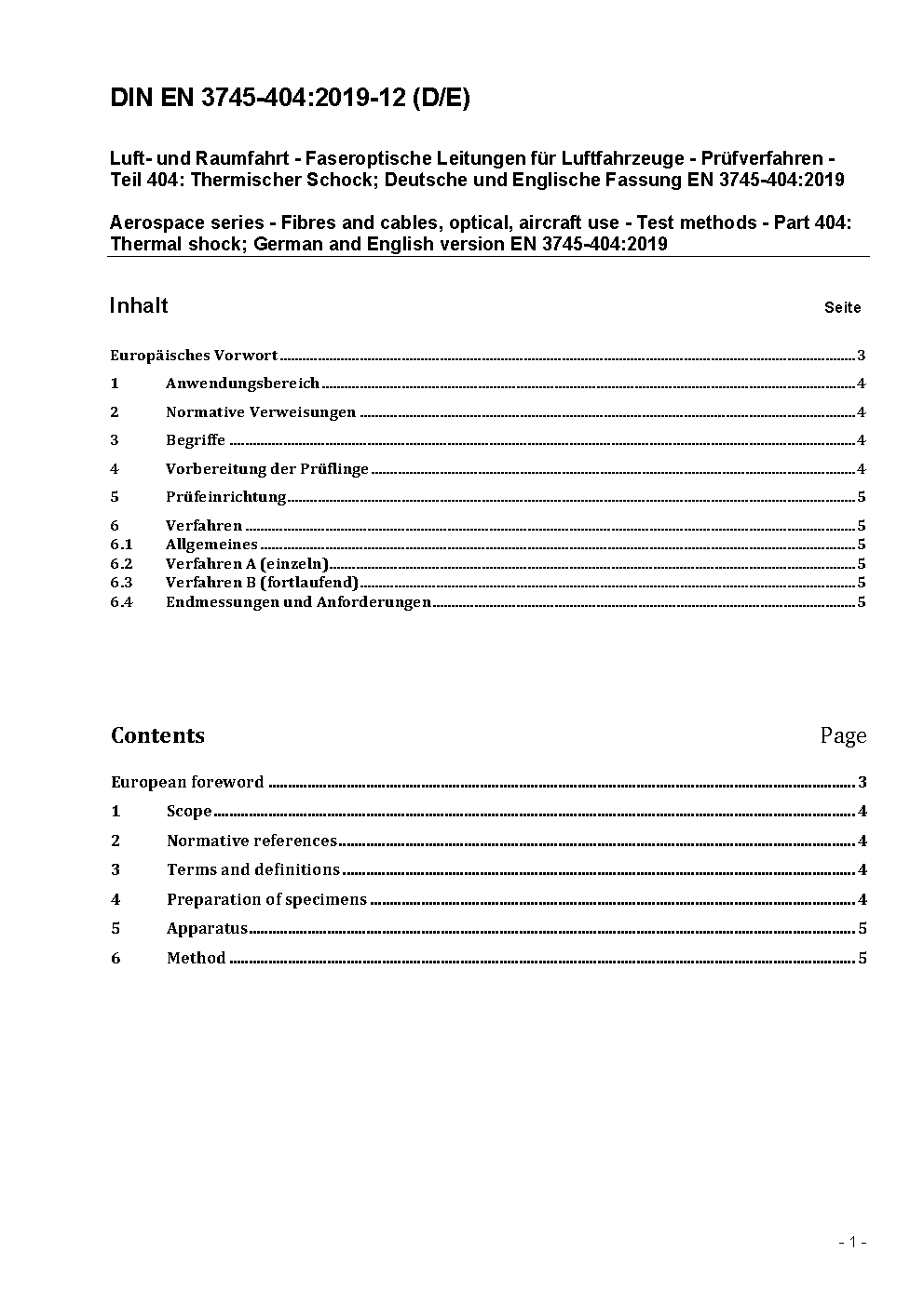 Aerospace series - Fibres and cables, optical, aircraft use - Test methods - Part 404: Thermal shock; German and English version EN 3745-404:2005