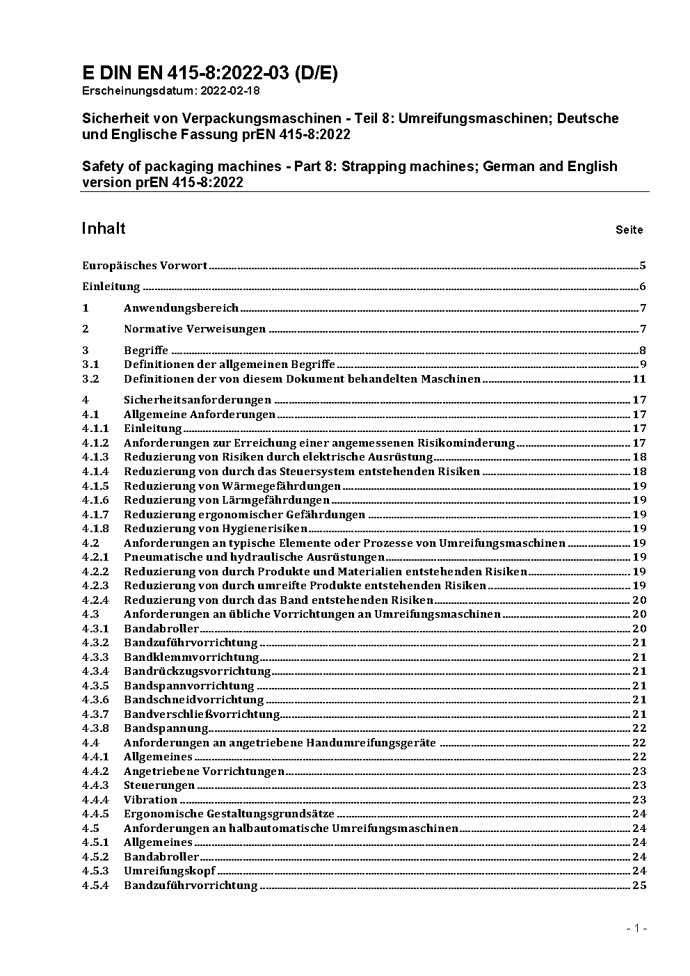 Safety of packaging machines - Part 8: Strapping machines; German version EN 415-8:2008, Corrigendum to DIN EN 415-8:2011-06