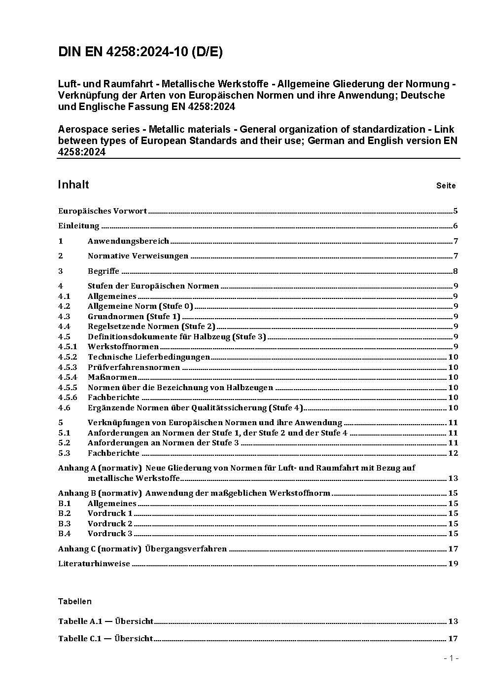 Aerospace series - Metallic materials - General organization of standardization; links between types of EN standards and their use; German version EN 4258:1998